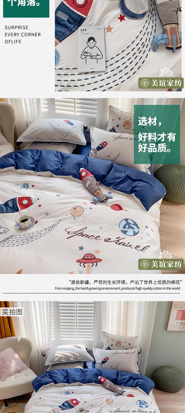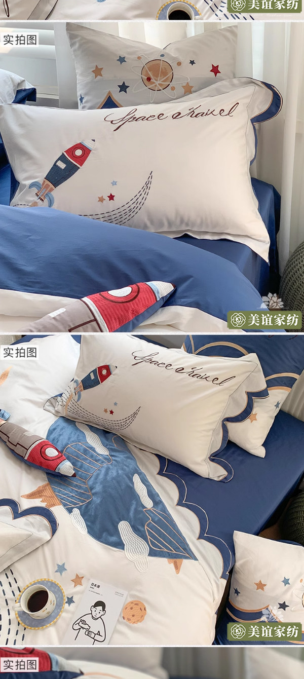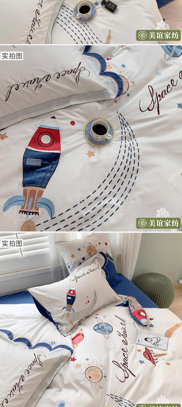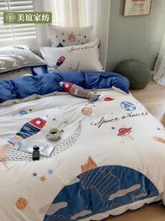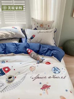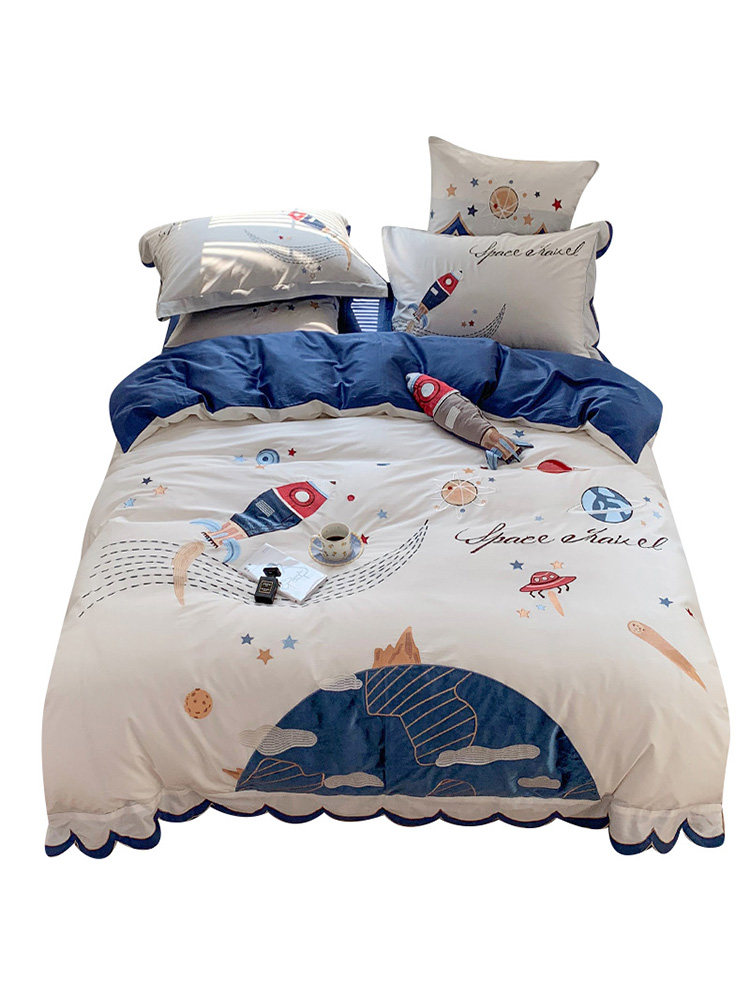 Мультяшный космический хлопковый комплект для мальчиков, простыня, пододеяльник для кроватки, покрывало, 60 шт, 4 предмета