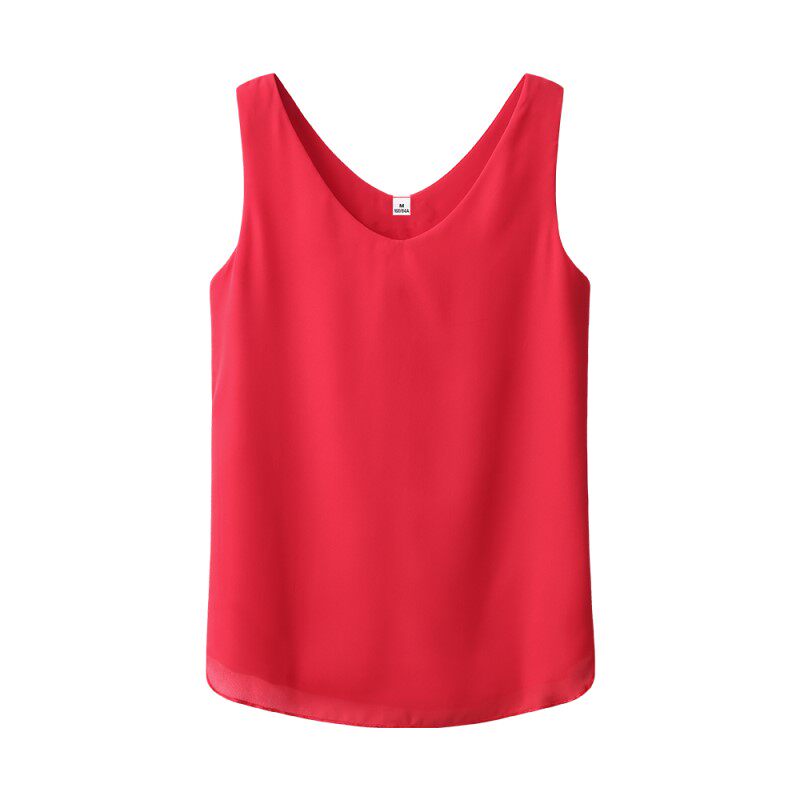 艾米恋 Шифоновый топ с чашечками, летняя майка топ, базовый костюм, футболка без рукавов, свободный крой, V-образный вырез