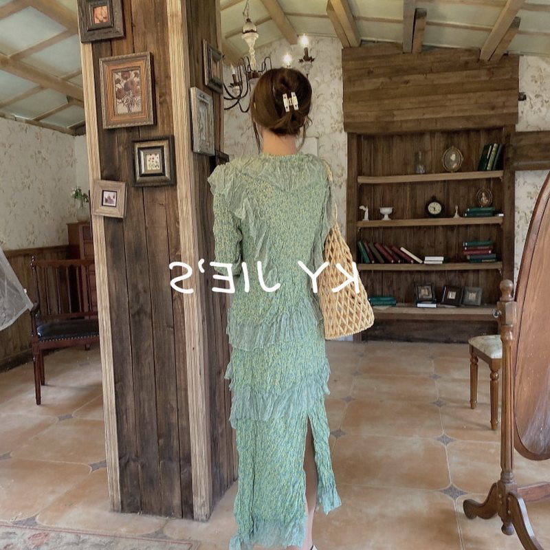 Демисезонное платье, шифоновый лонгслив, V-образный вырез, подходит для подростков, в цветочек