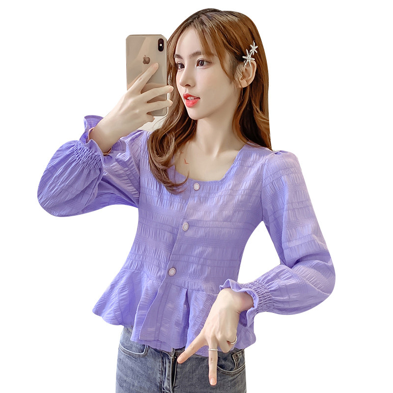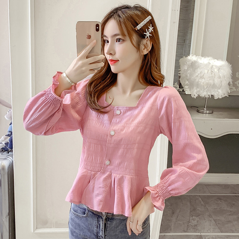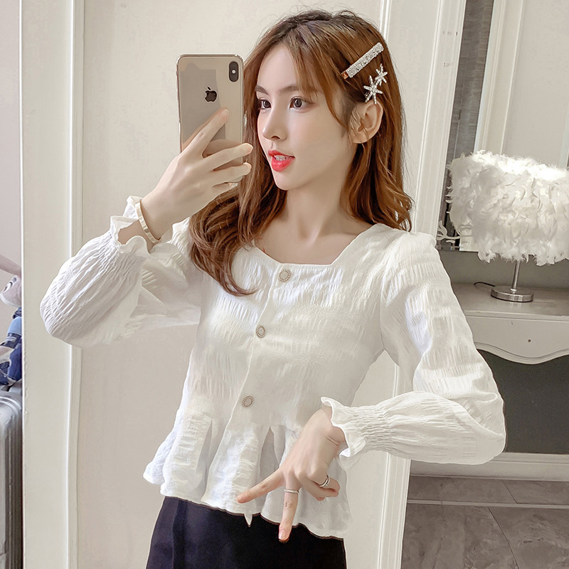 Осенний короткий лонгслив, кардиган, рубашка, квадратный вырез, облегающий крой, в западном стиле