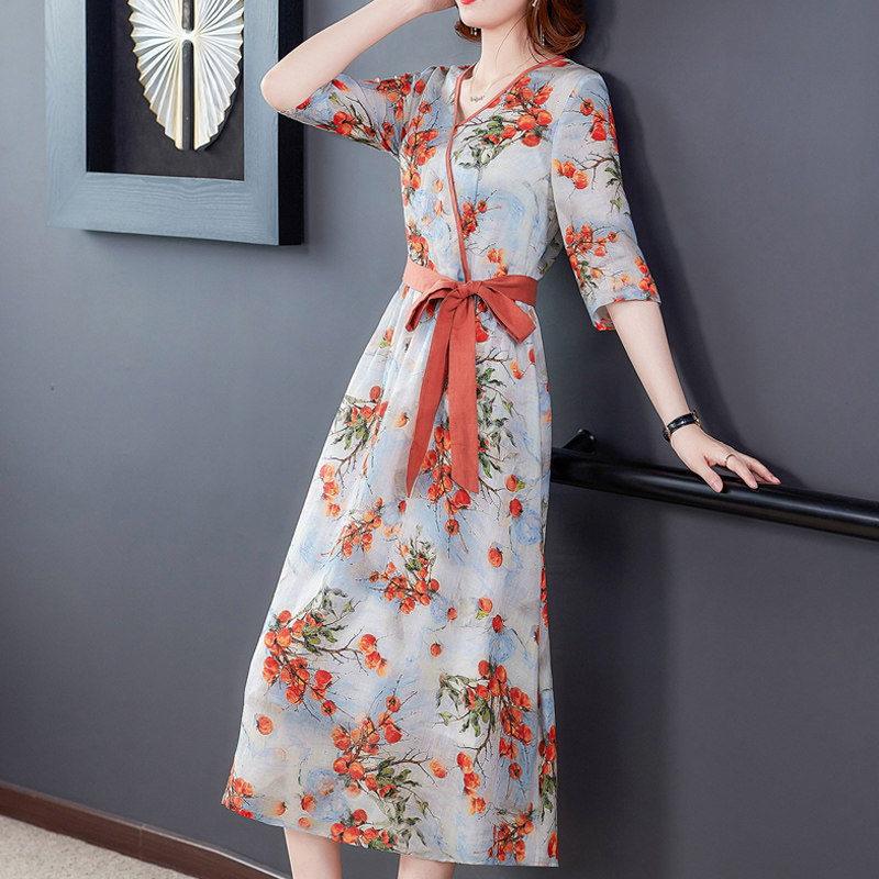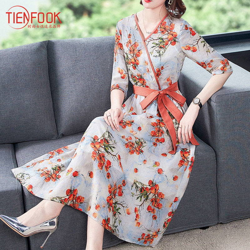 Элитное платье, из хлопка и льна, цветочный принт, в западном стиле, 2021 года, большой размер