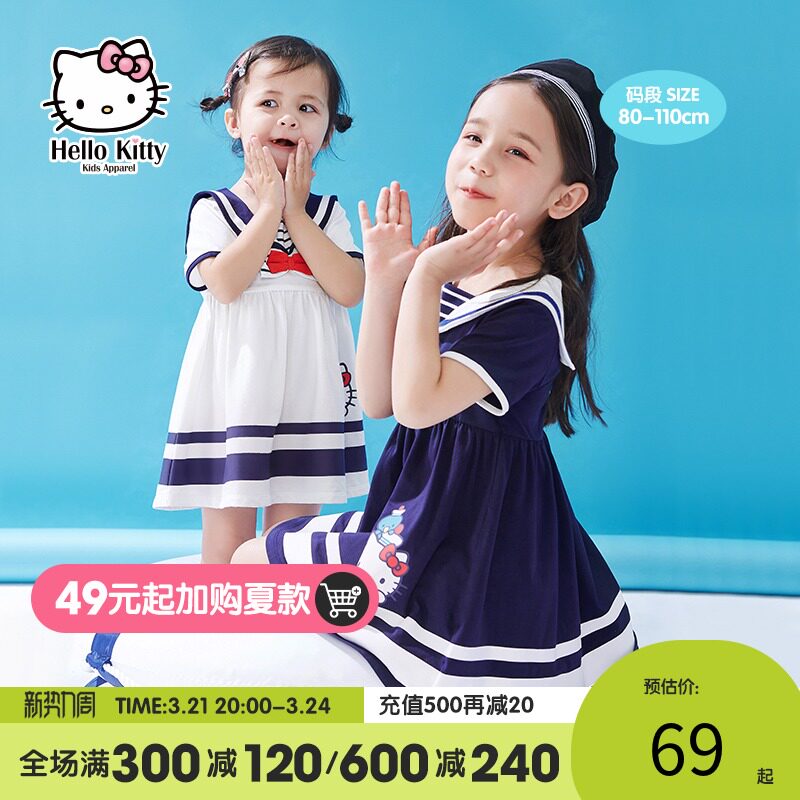 Hello Kitty, летнее трикотажное военно-морское платье с коротким рукавом для раннего возраста, юбка для девочек