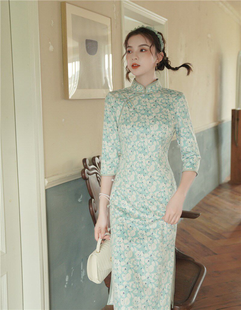 [Распродажа, только обмен, возврат средств невозможен] Замшевое платье чонсам с восемью пуговицами сбоку, улучшенная версия средней длины для юношества