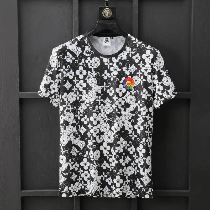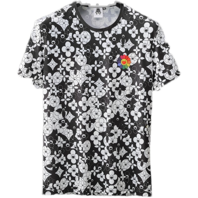 Шелковая хлопковая футболка на солнечной энергии, в цветочек, принт, большой размер, короткий рукав