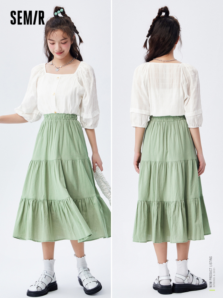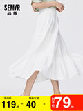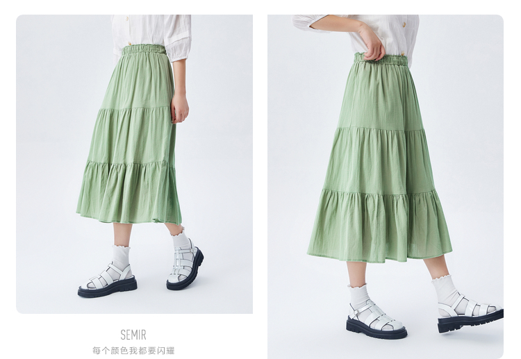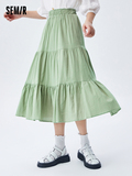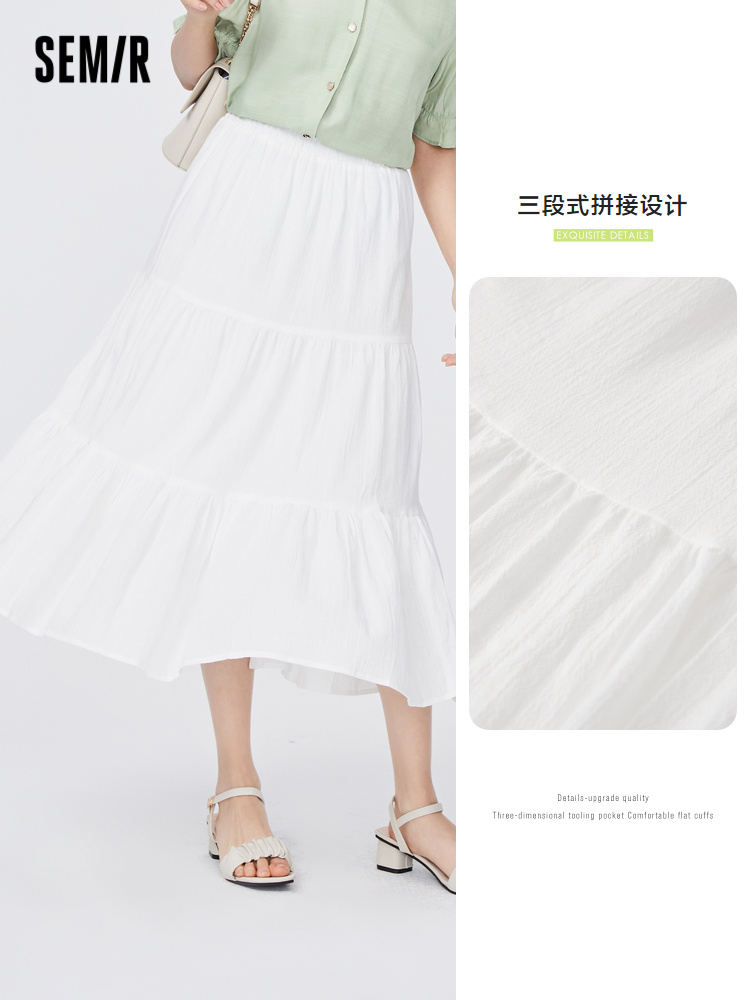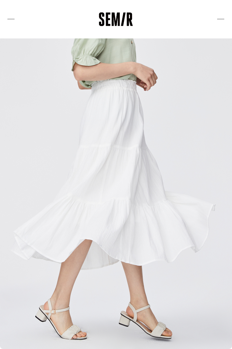 Semir, летняя белая хлопковая длинная юбка, сезон 2021, А-силуэт, свободный крой, средней длины, эластичная талия