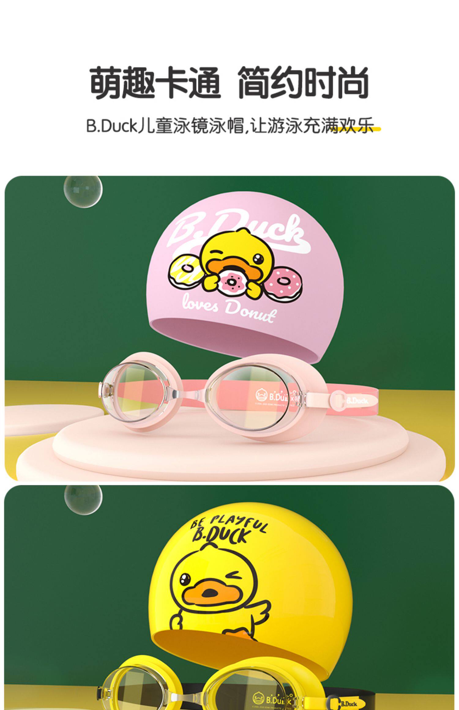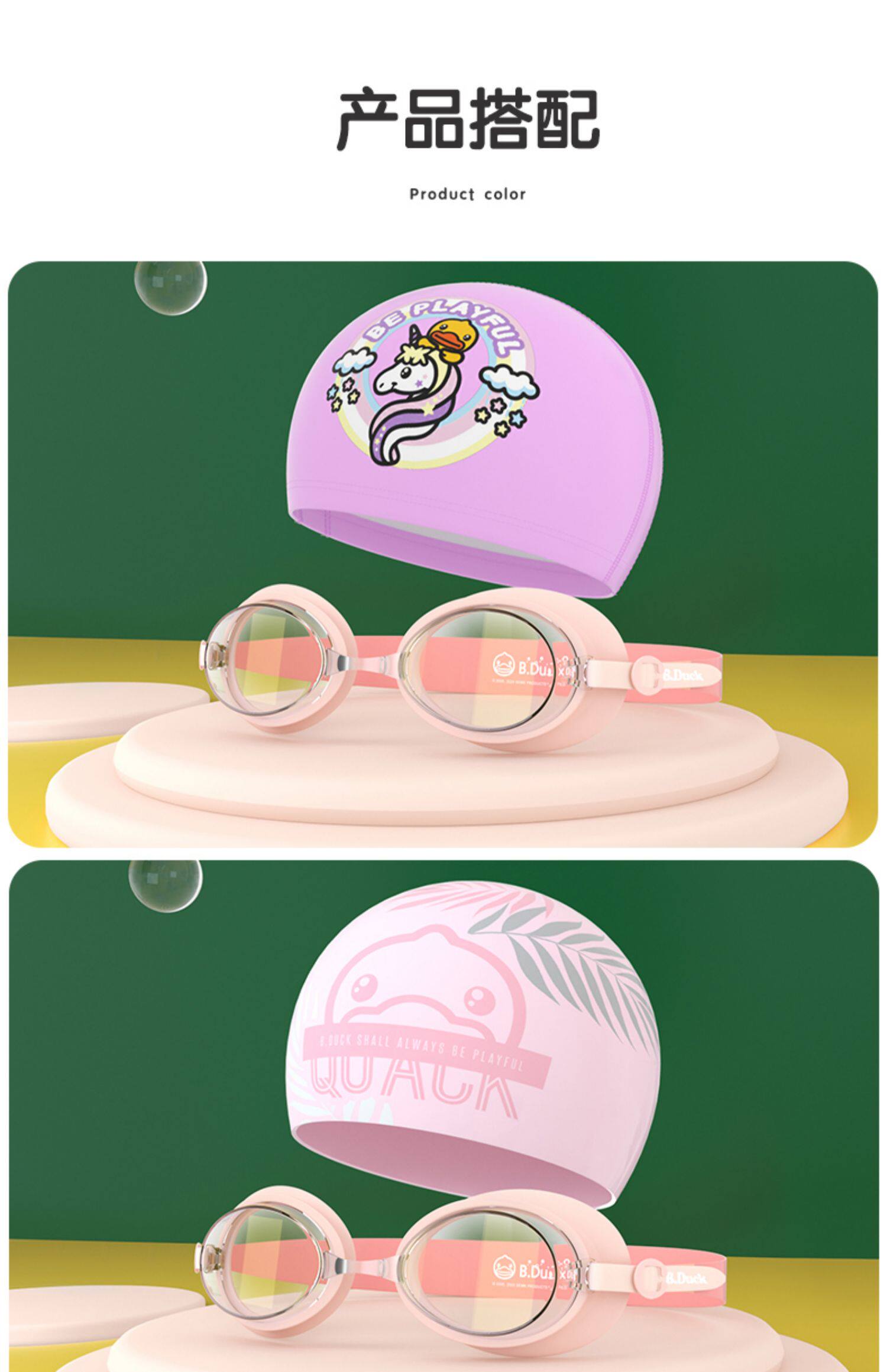 B.Duck Детское водонепроницаемое снаряжение подходит для мужчин и женщин без запотевания стекол, очки для плавания, плавательная шапочка, комплект, дайвинг