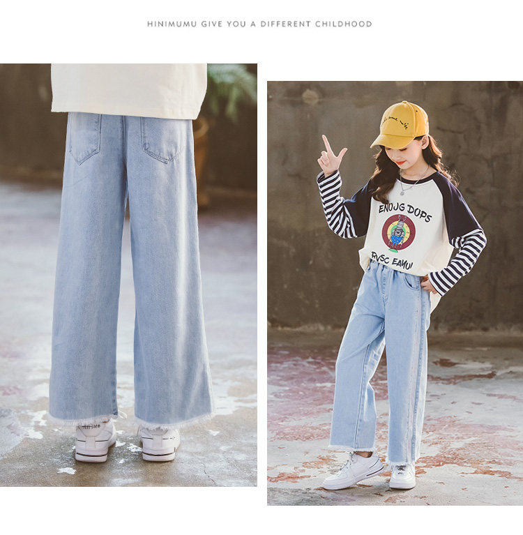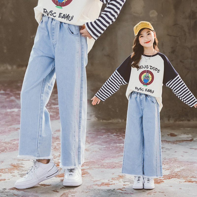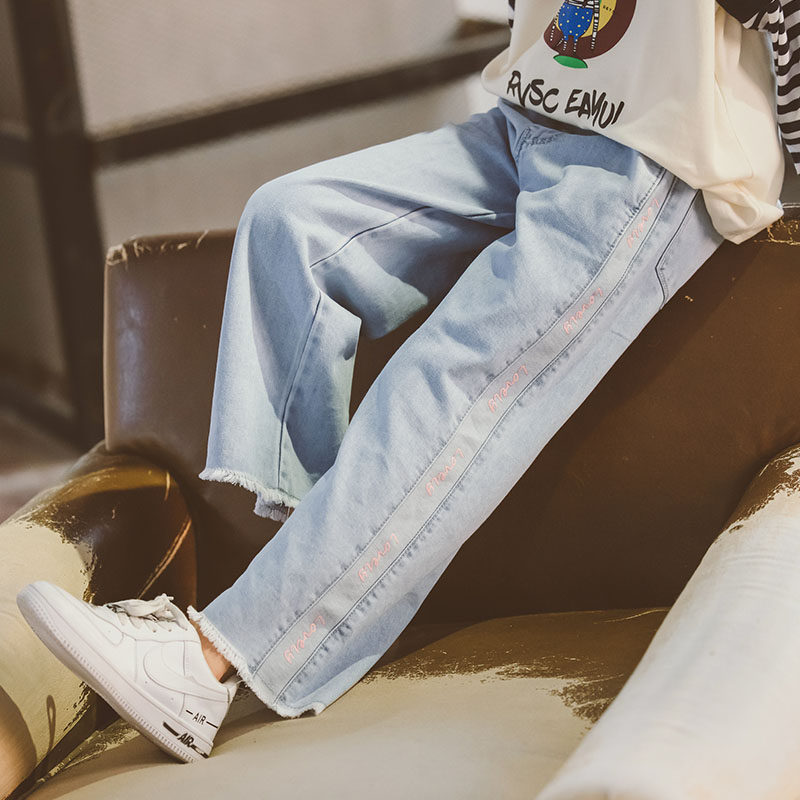 Джинсовые осенние детские штаны, в корейском стиле, подходят для подростков, свободный прямой крой