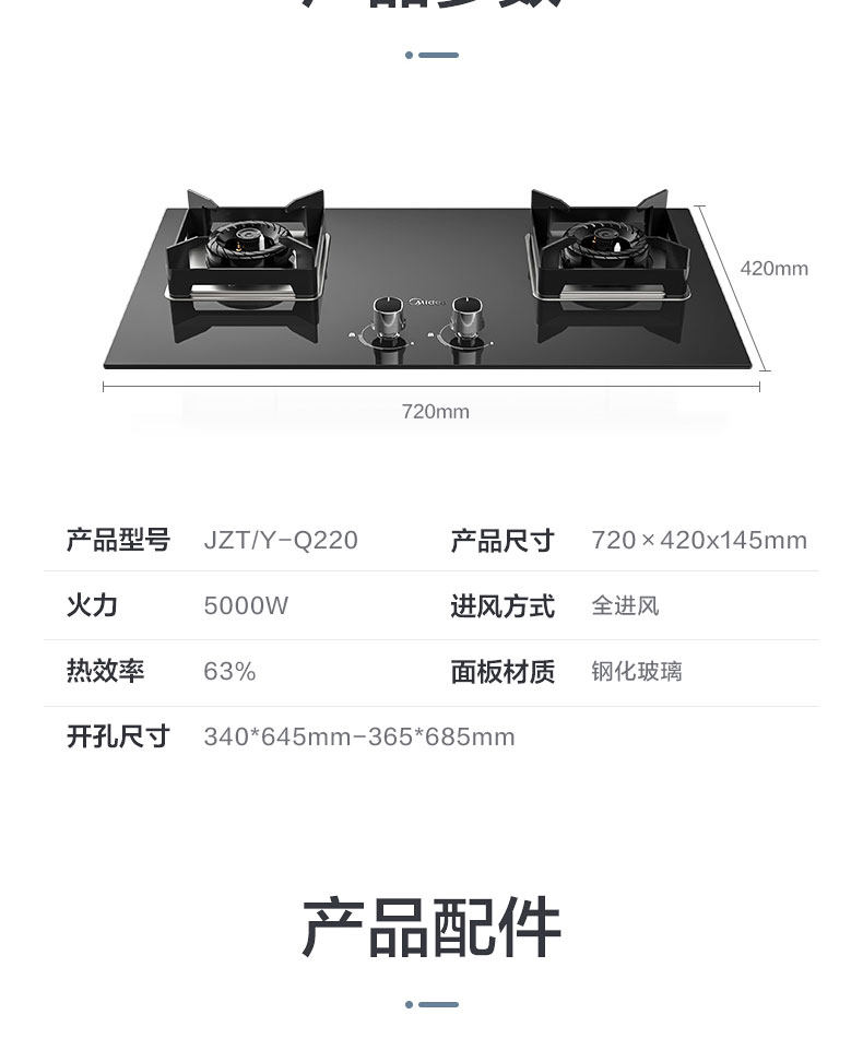 Midea Q220 Газовая плита природная газа двойная плита домашняя рабочая стола сжиженный газовый талон встроенный в Embedded Dual Ophing