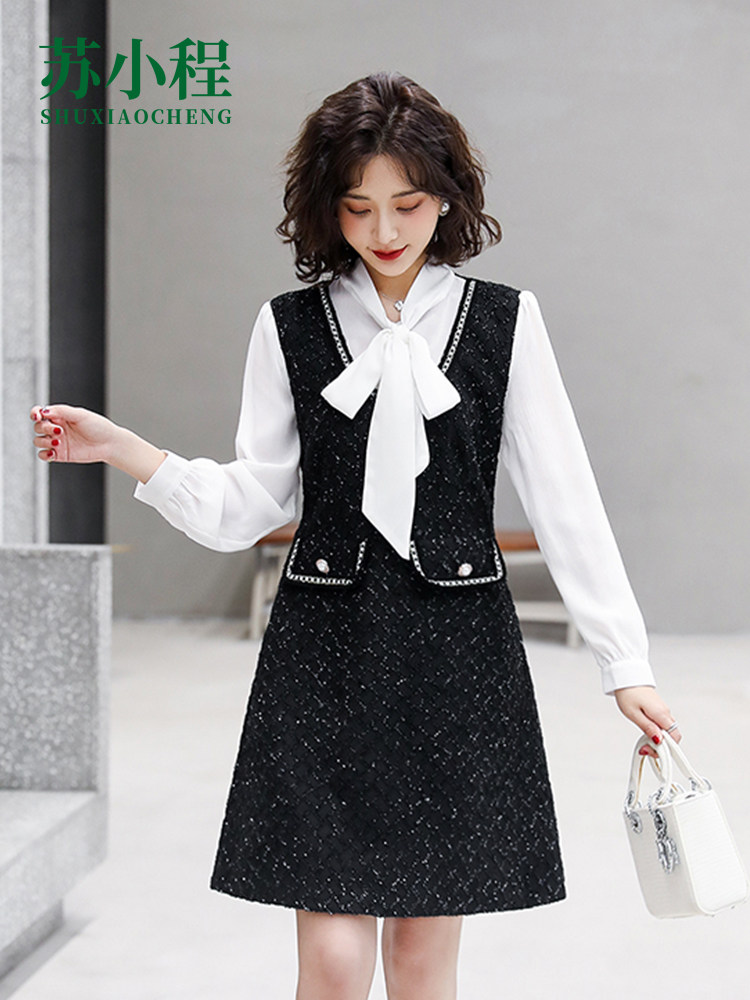 Шифоновый лонгслив, молодежное платье, подходит для подростков, 2021 года, в стиле Шанель, А-силуэт