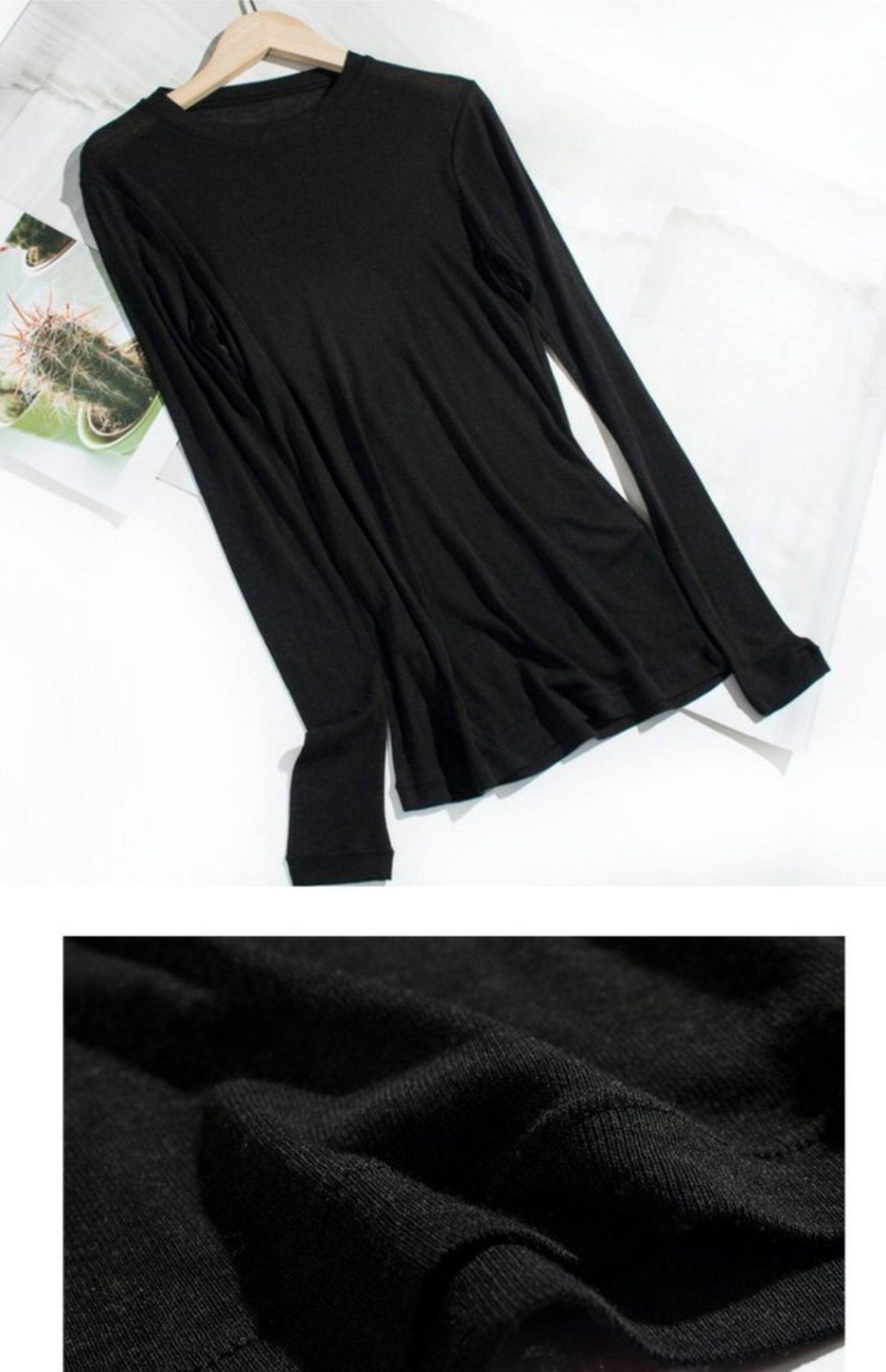 Базовый приятный телу шерстяной тонкий трикотажный свитер с круглым воротником, лонгслив