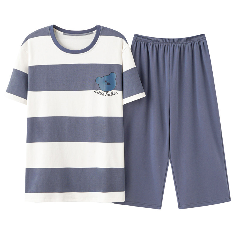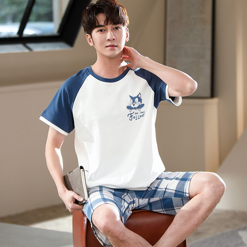 Мужская летняя пижама, тонкие шорты для отдыха, комплект, летний костюм, короткий рукав, большой размер