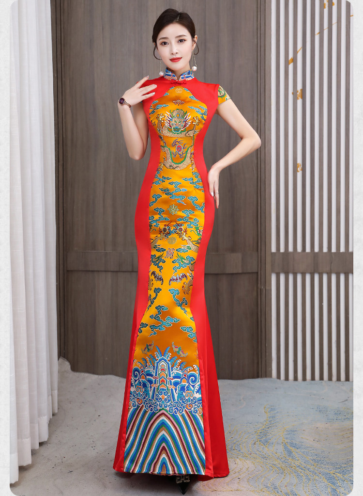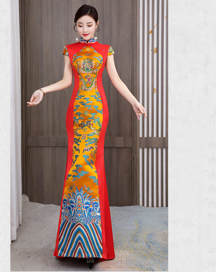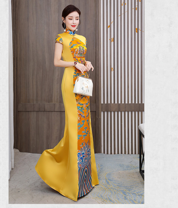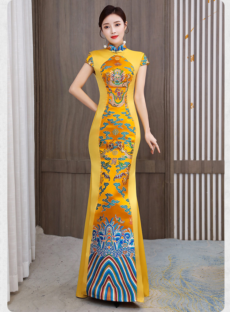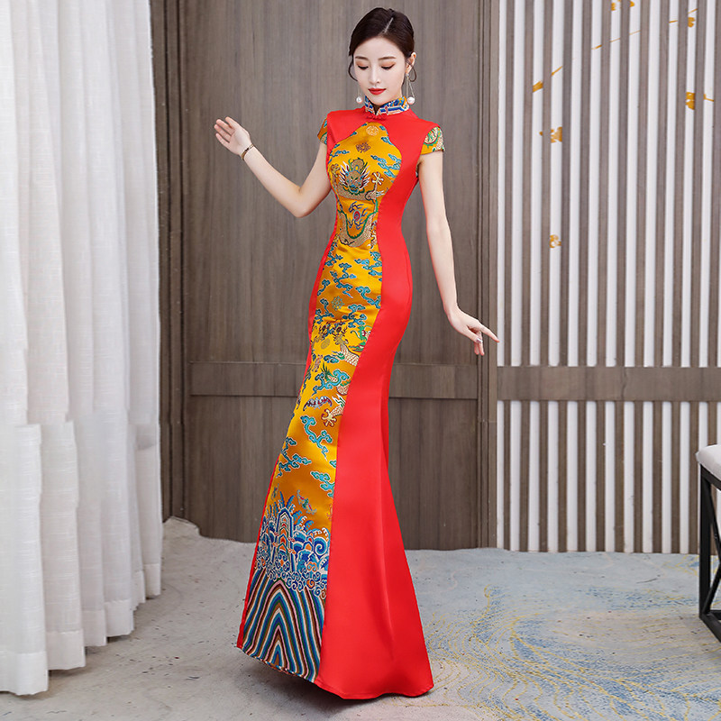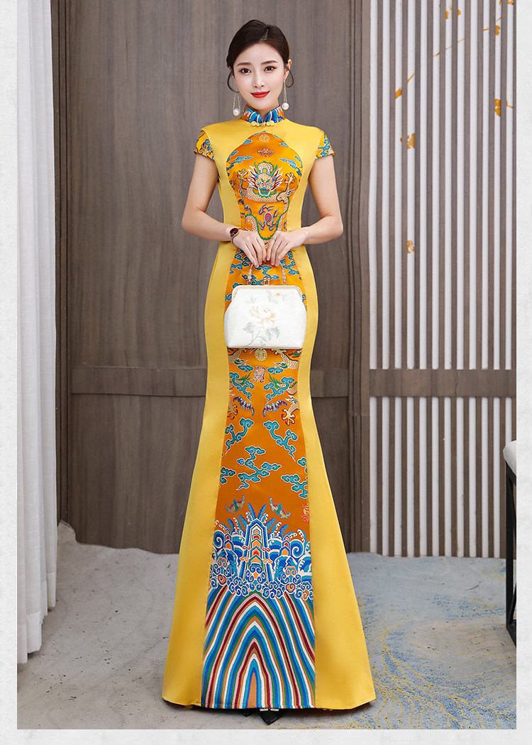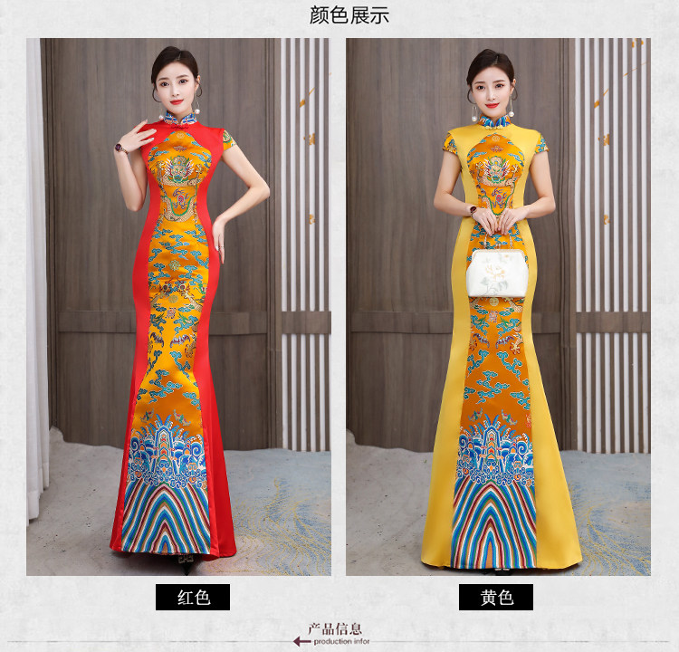 Длинное вечернее платье, манекен головы, ципао, костюм, новая коллекция, китайский стиль, облегающий крой