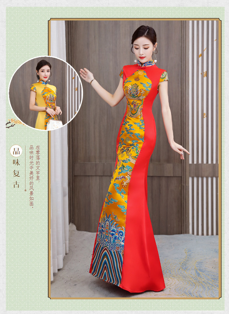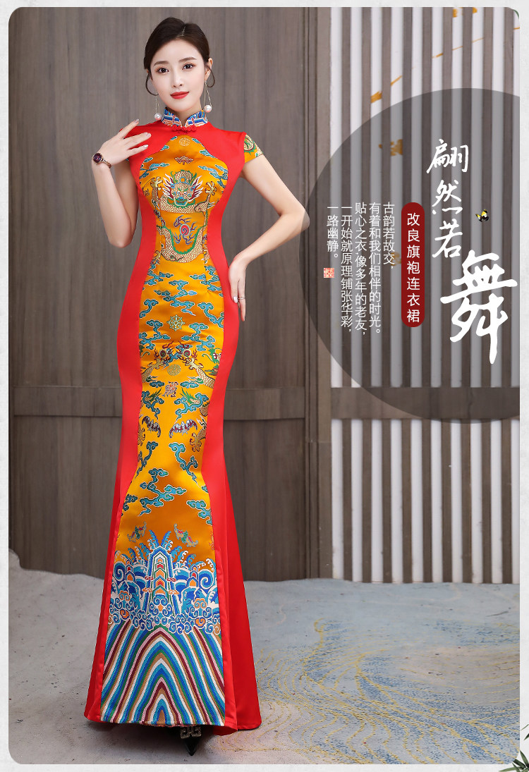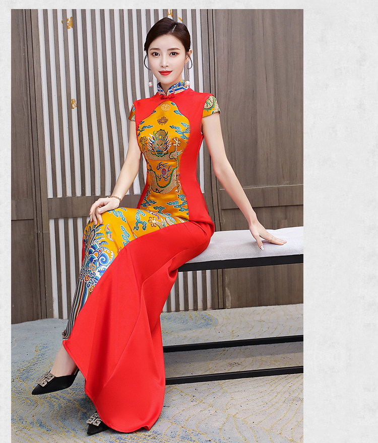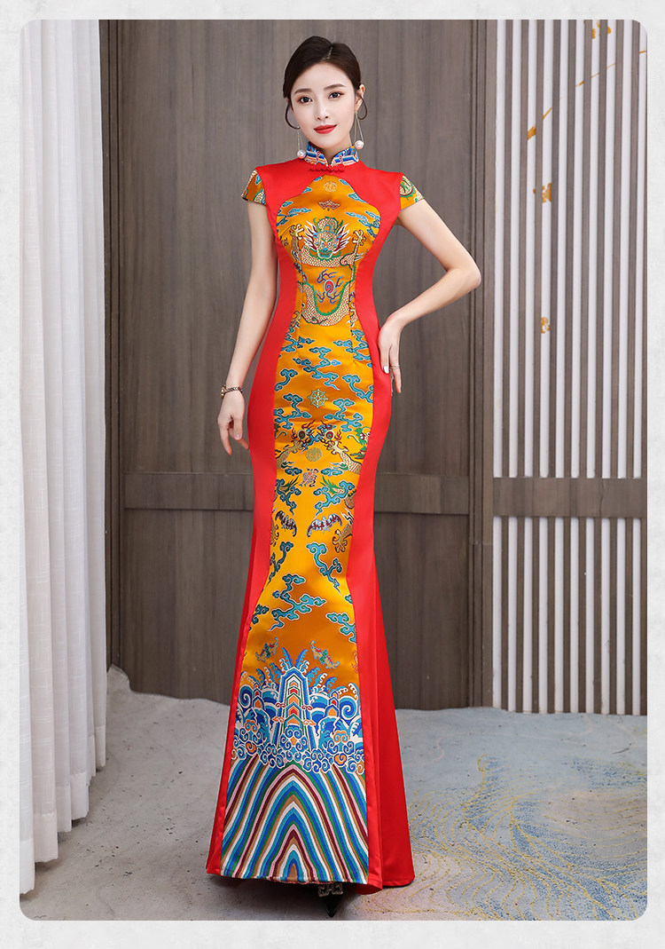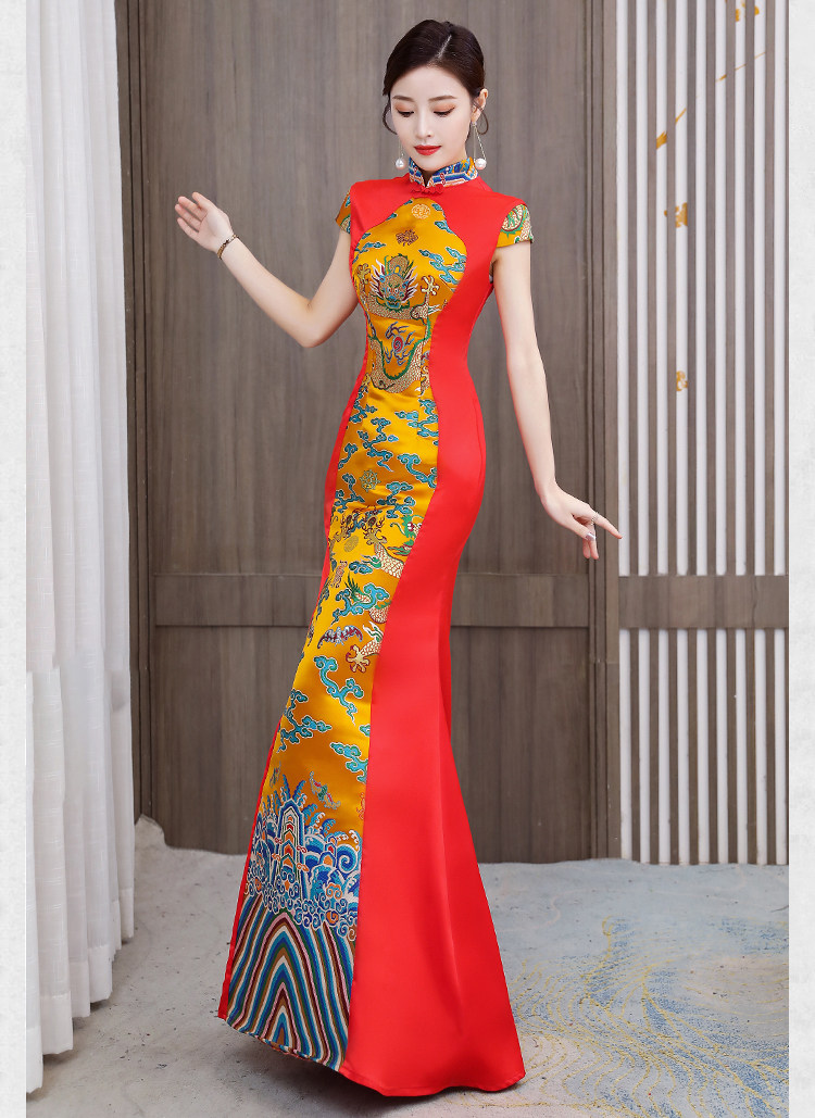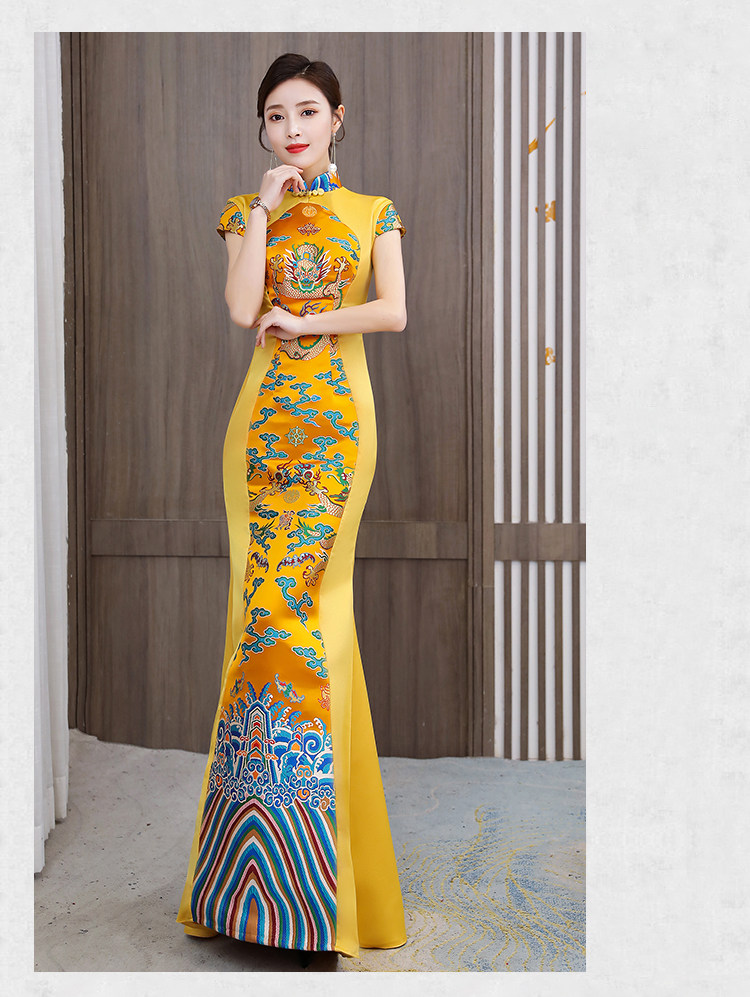 Длинное вечернее платье, манекен головы, ципао, костюм, новая коллекция, китайский стиль, облегающий крой