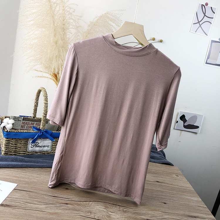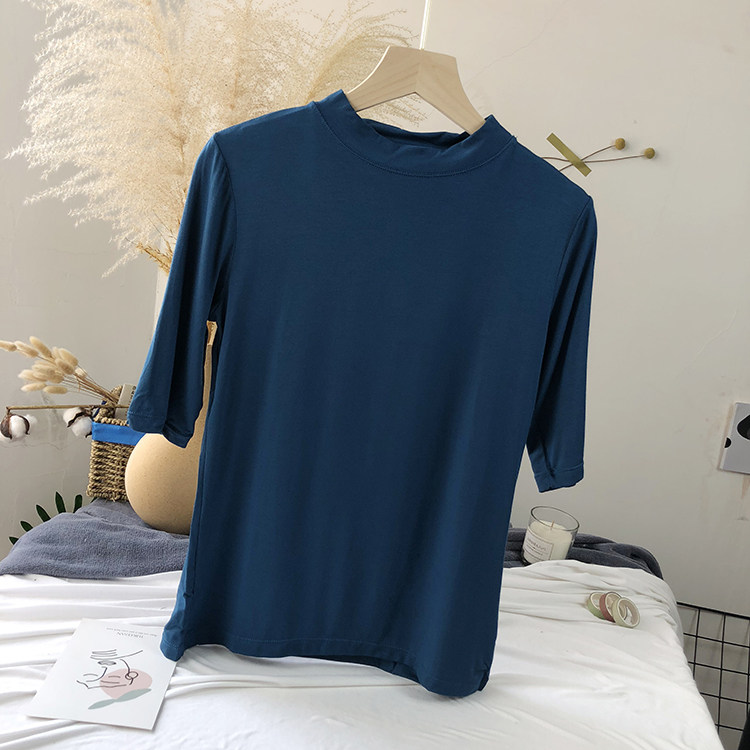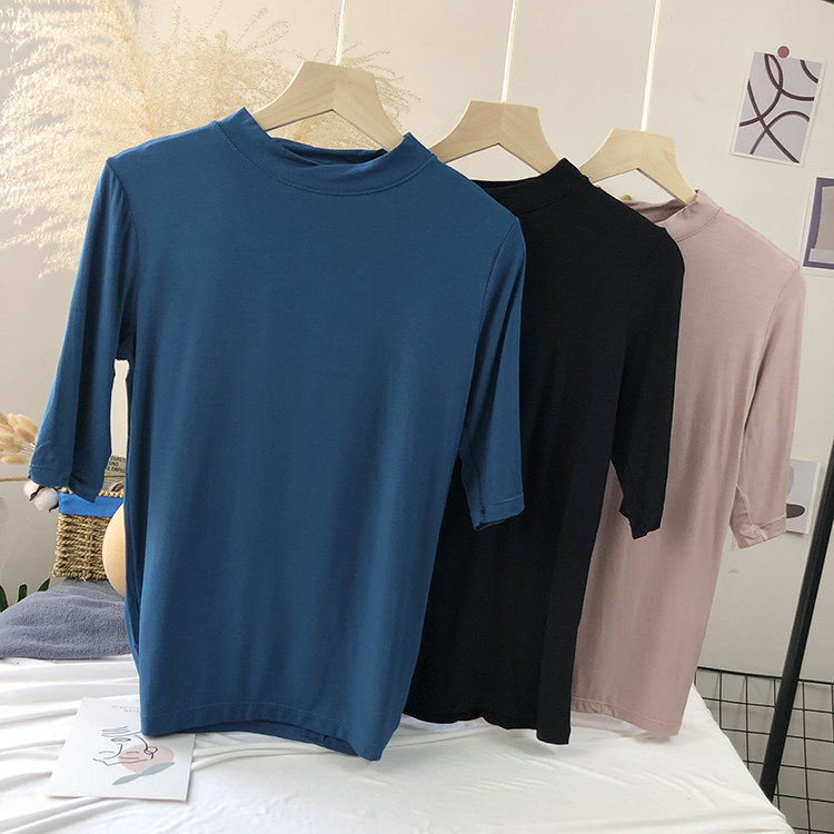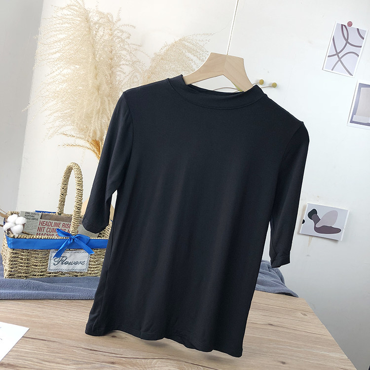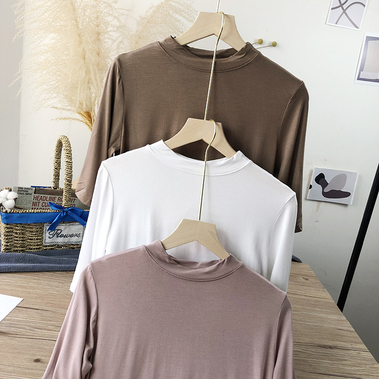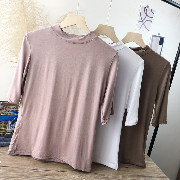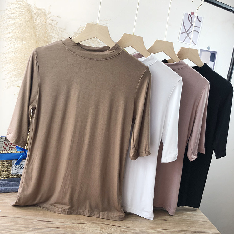 Базовая белая весенняя футболка, высокий воротник, облегающий крой