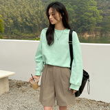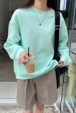 Мятная тонкая свежая толстовка для школьников и студентов, морская соль с круглым воротником, оверсайз
