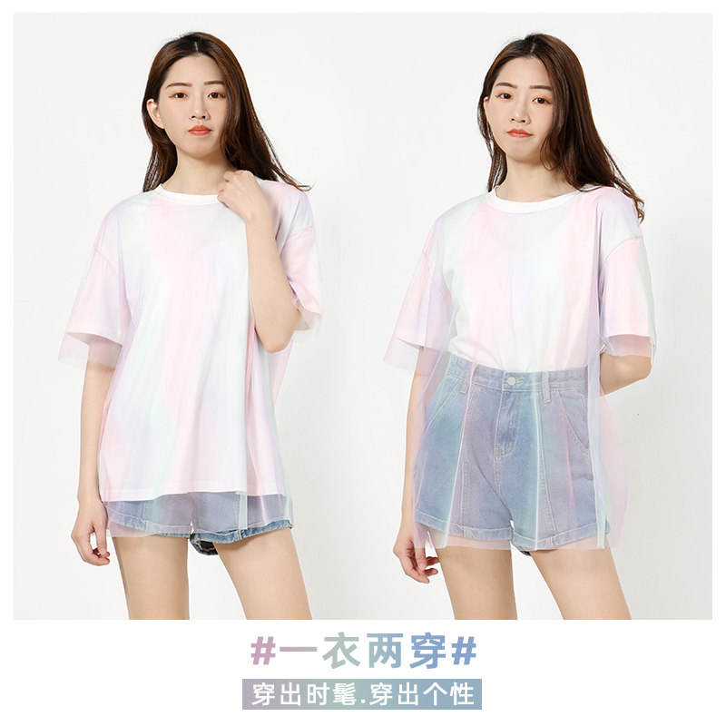 艾米恋 Летняя футболка, комплект, градиент, свободный крой