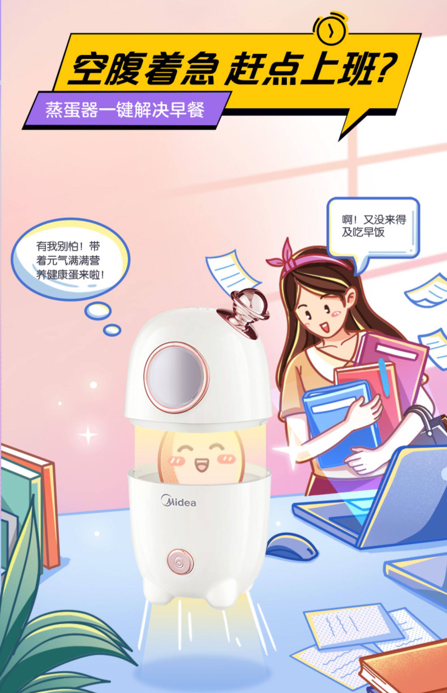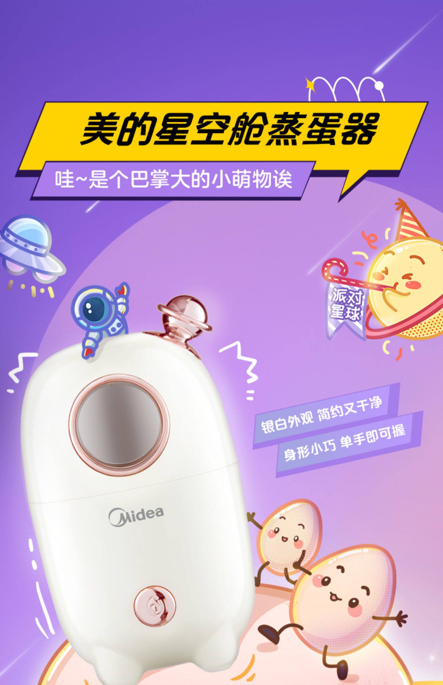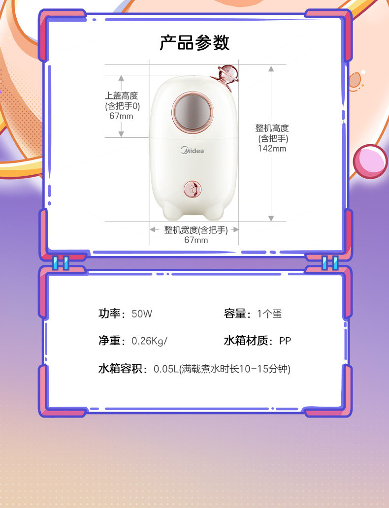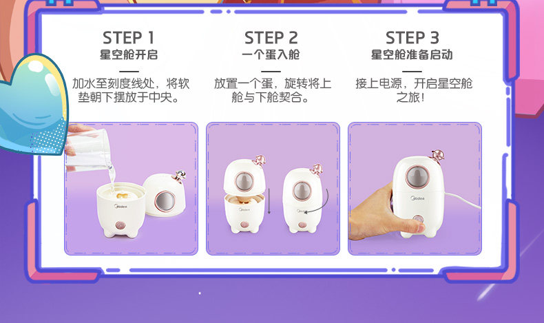 Midea Приготовление яиц мини -маленькая автоматическая питание от домашнего завтрака вареные яйца