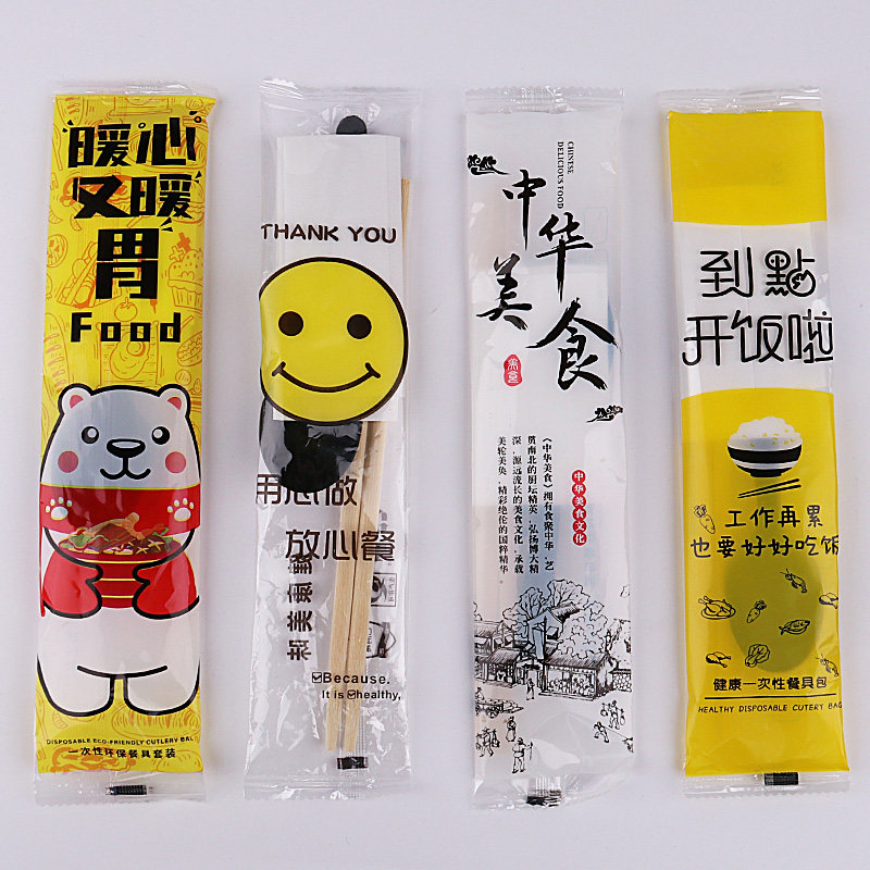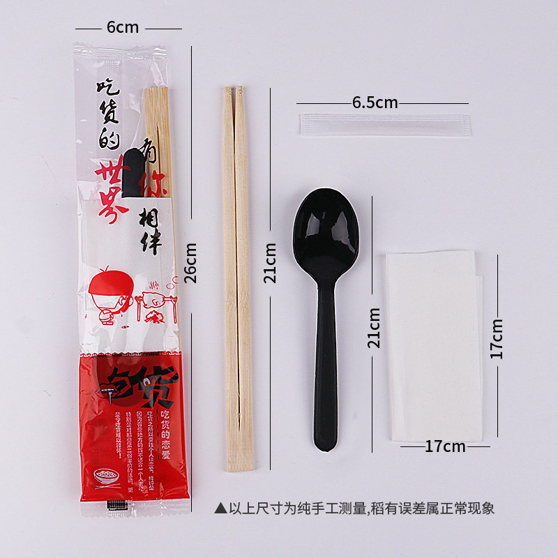 Одноразовые палочки для еды для коммерческого использования, комплект, пакет, ложка, салфетки, посуда, делается под заказ, 4 предмета