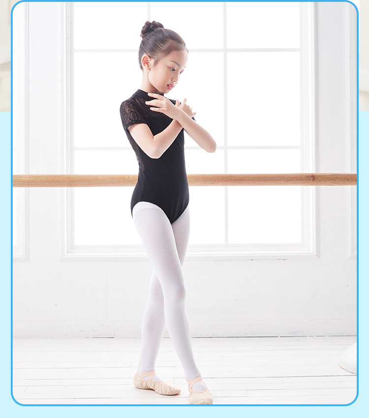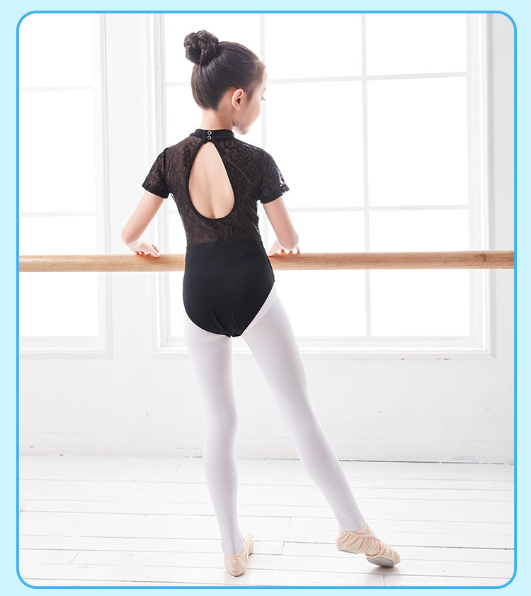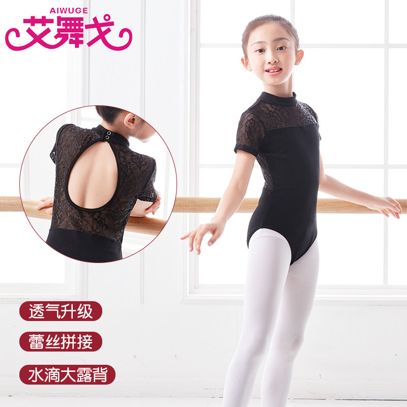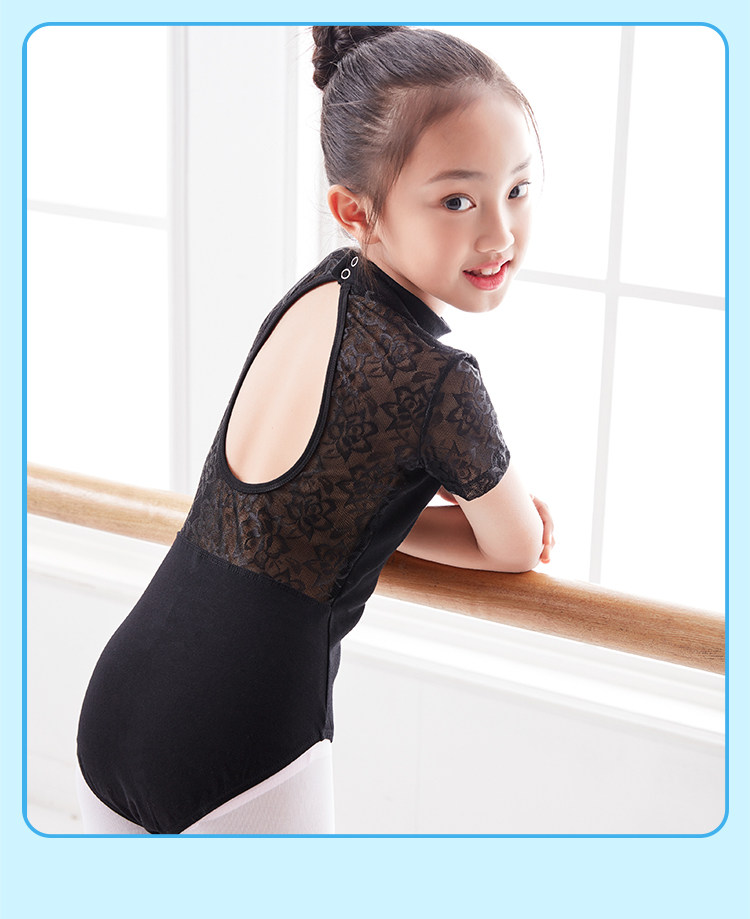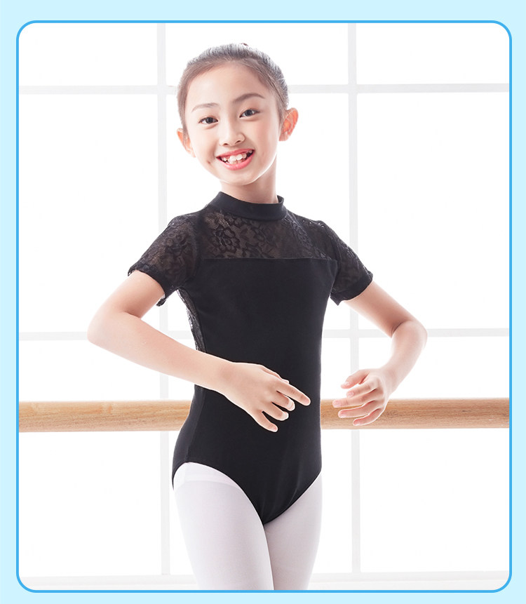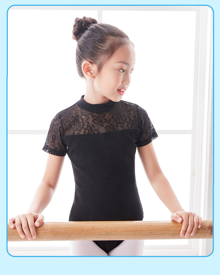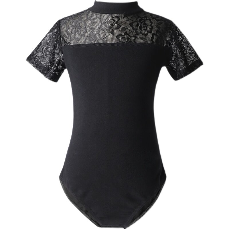 Детская черная кружевная танцующая летняя спортивная одежда, короткий рукав