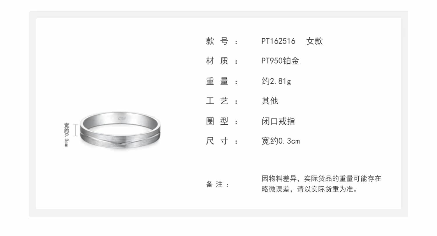 周大福 Платиновое ювелирное украшение для влюбленных, платина 950 пробы, платина 162516 пробы