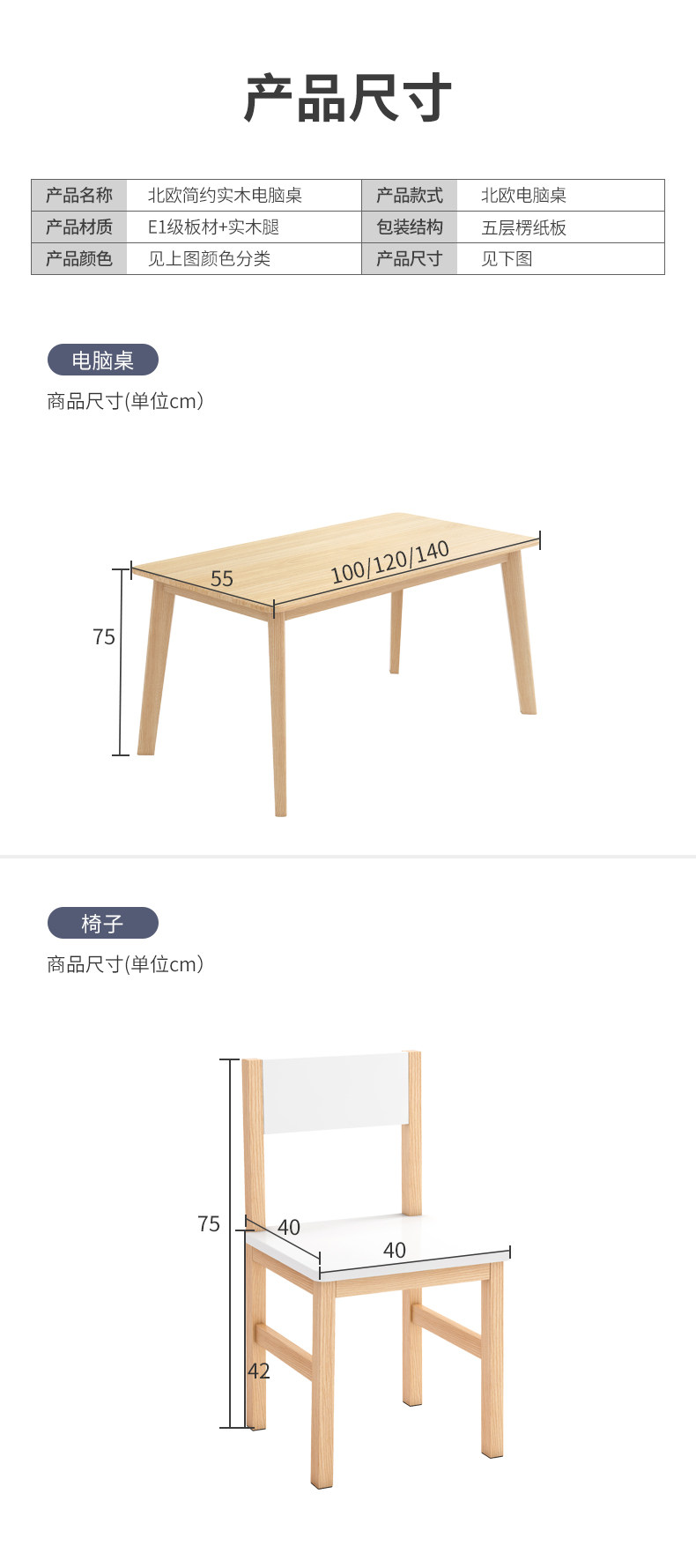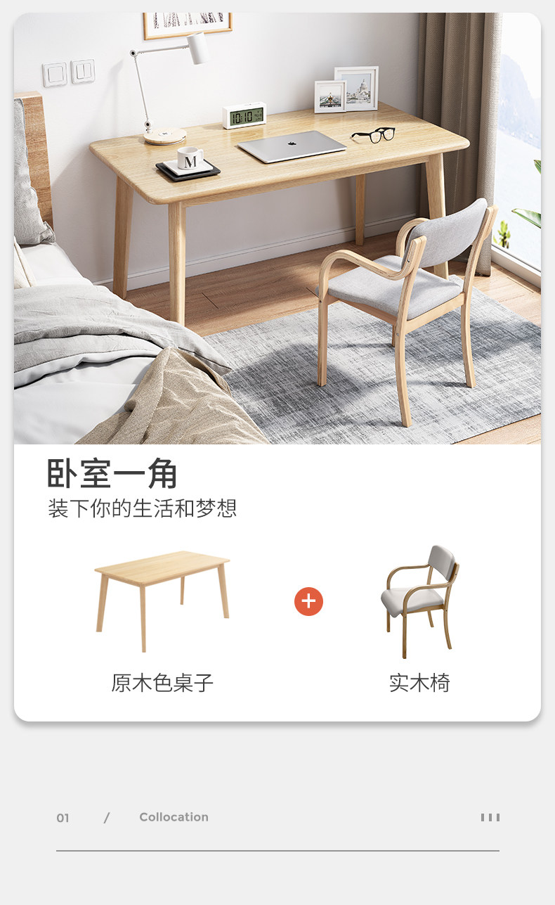 Стол простая мебель с твердым деревянным столом и комбинация стул Минималистское обучение Студент Студент простая спальня -в одном компьютерном столе