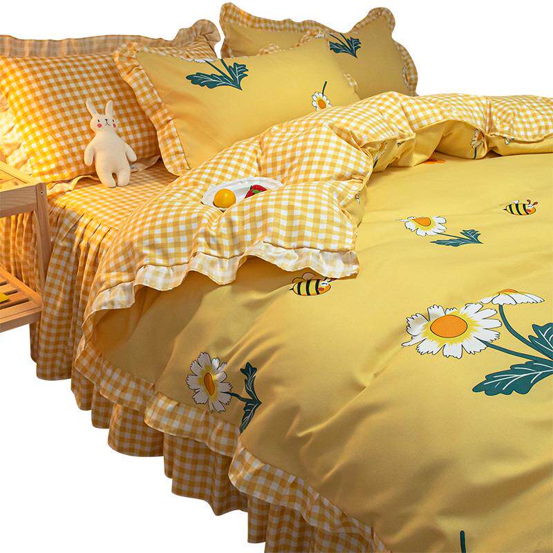 Комплект, брендовое покрывало, простыня, пододеяльник для принцессы, 4 предмета, в корейском стиле, 4 шт, 3 предмета
