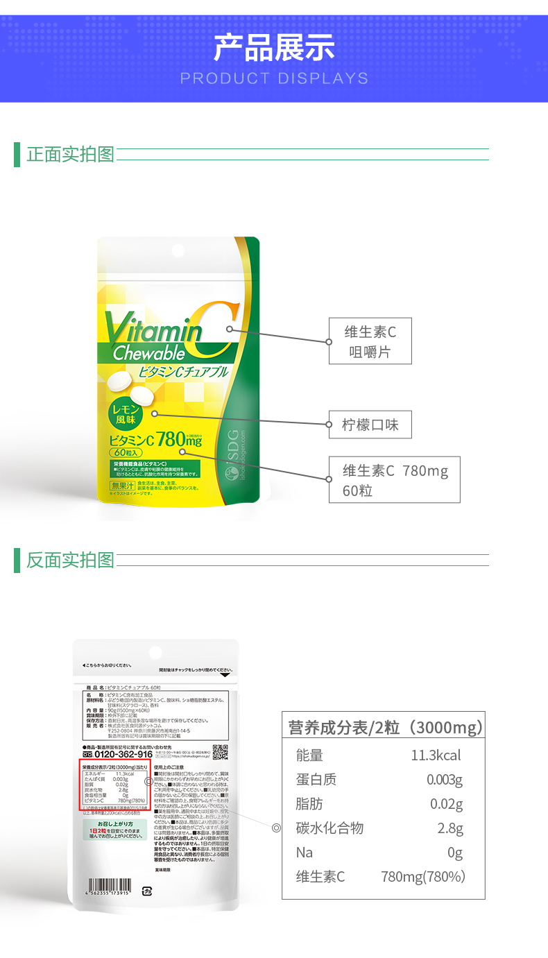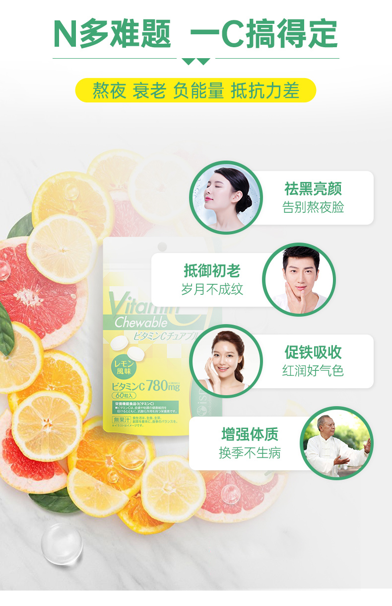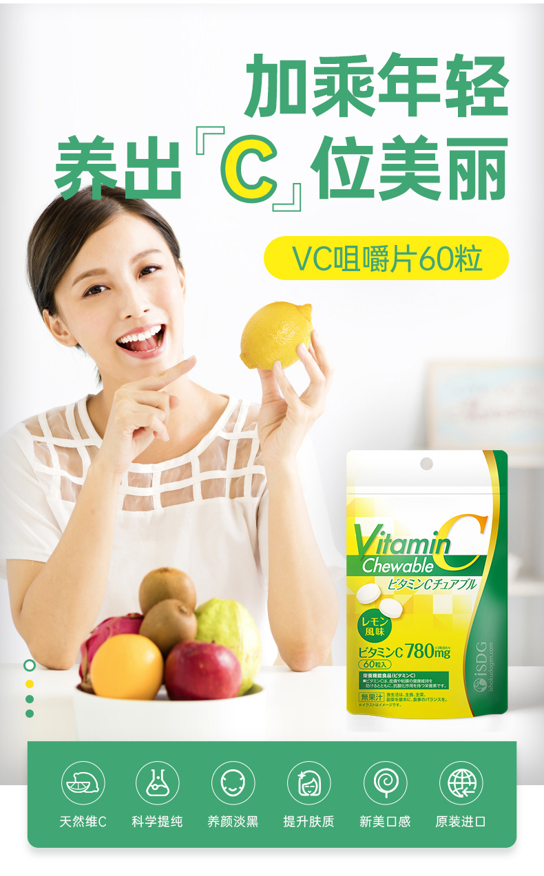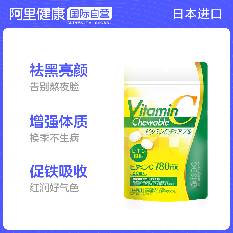 ISDG Япония импортированные таблетки витамина С для улучшения иммунитета VC Лимонный вкус 60 таблетки/сумка