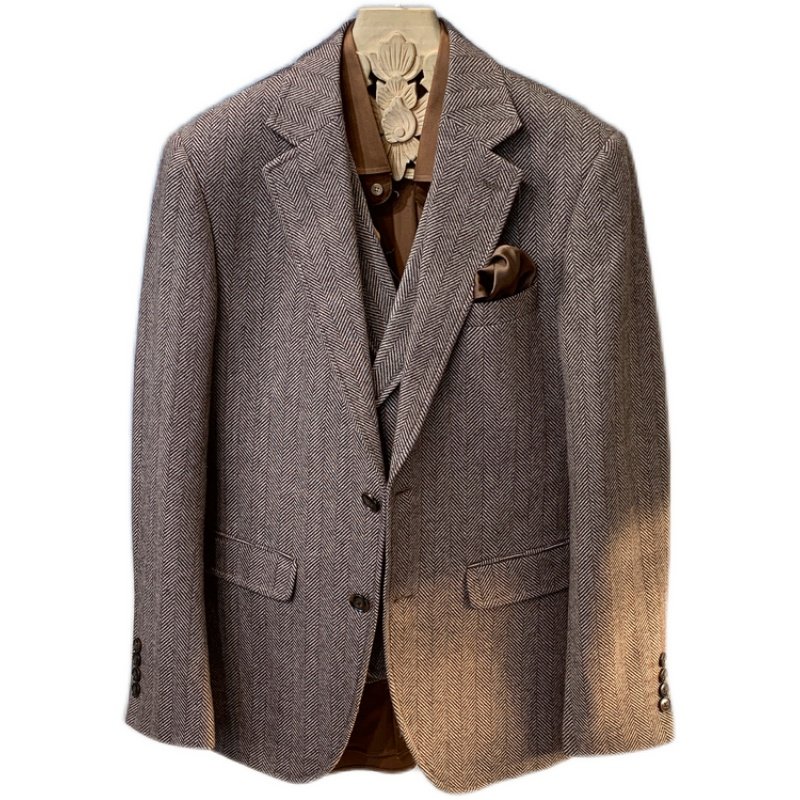 Шерстяной пиджак классического кроя, мужской трендовый костюм, модный комплект, в британском стиле, большой размер, в корейском стиле