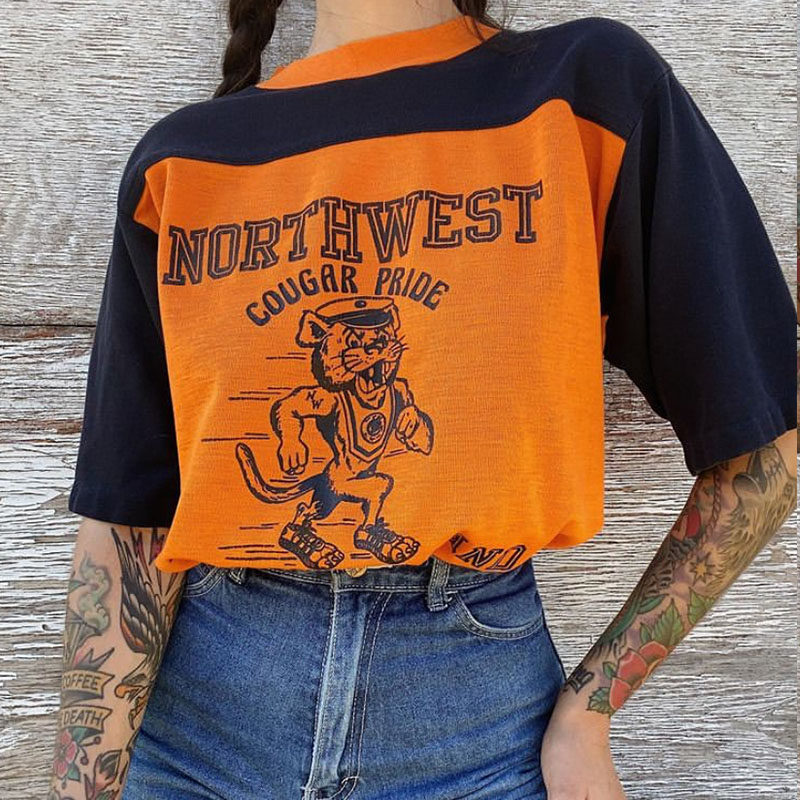Tide, ретро оранжевая тонкая футболка с коротким рукавом, в американском стиле, оверсайз