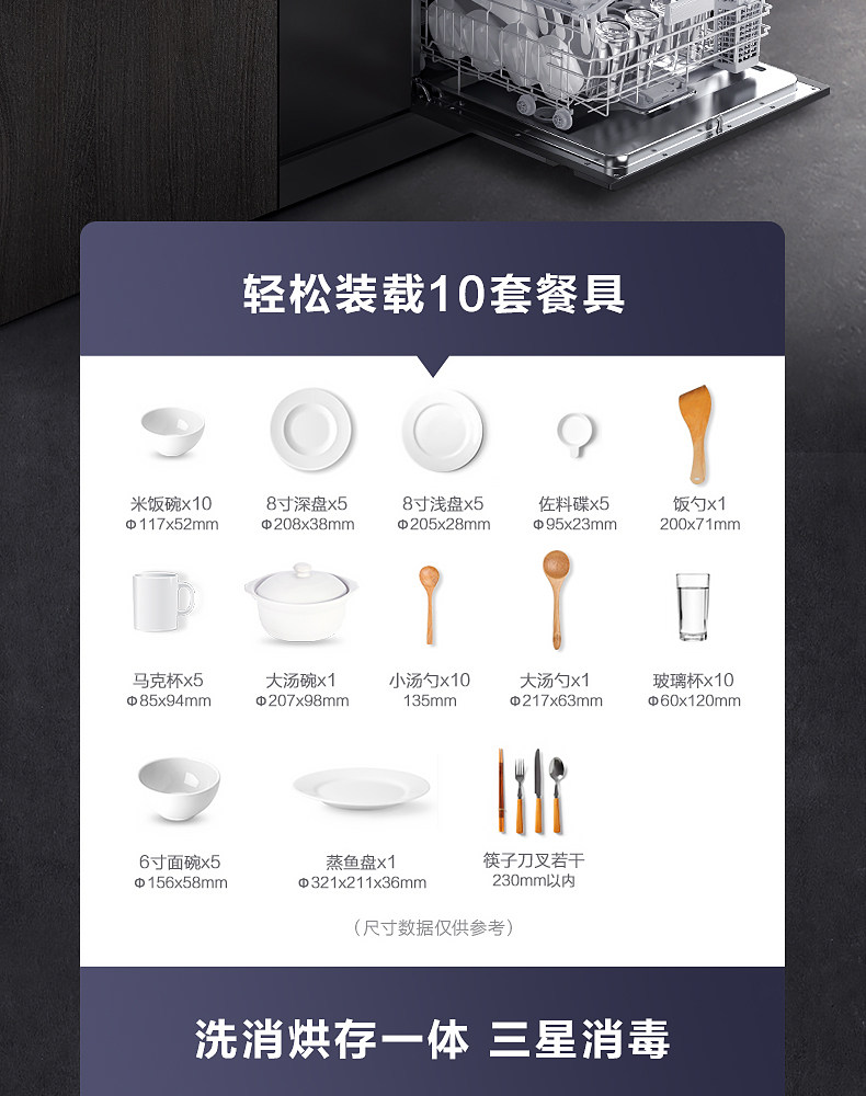 Мидиагрочная посудомоечная машина, интегрированная в инсталляцию 8 набор посудомоечной машины Hot Air Smart Home xq02