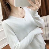 Шерстяной демисезонный свитер, трикотажная кашемировая рубашка с круглым воротником, V-образный вырез