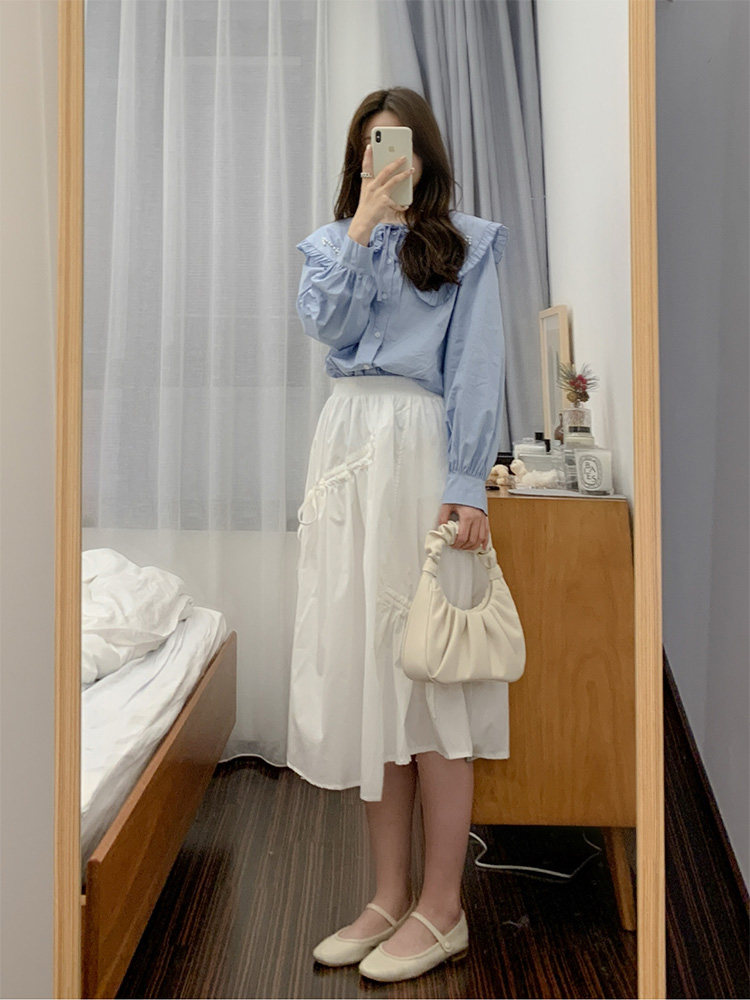| Цвет: | Синяя рубашка, белая юбка |