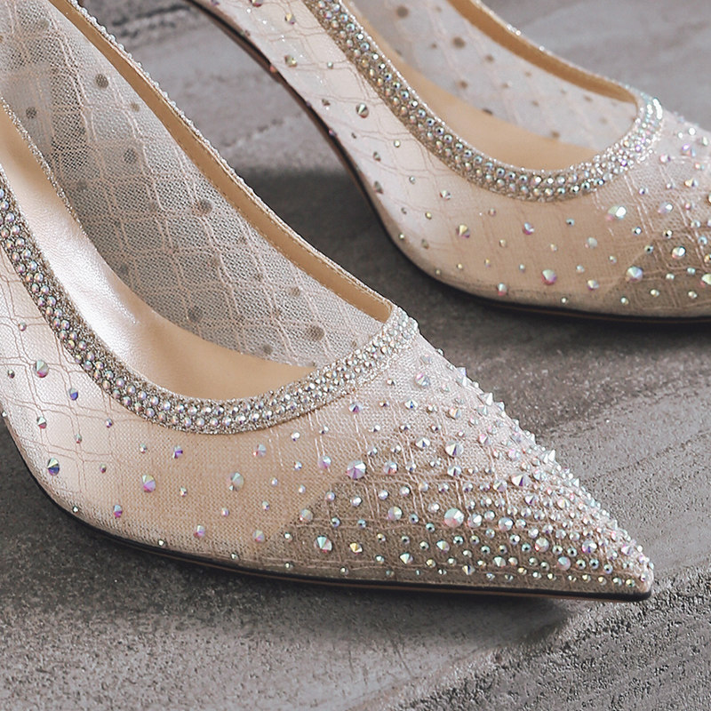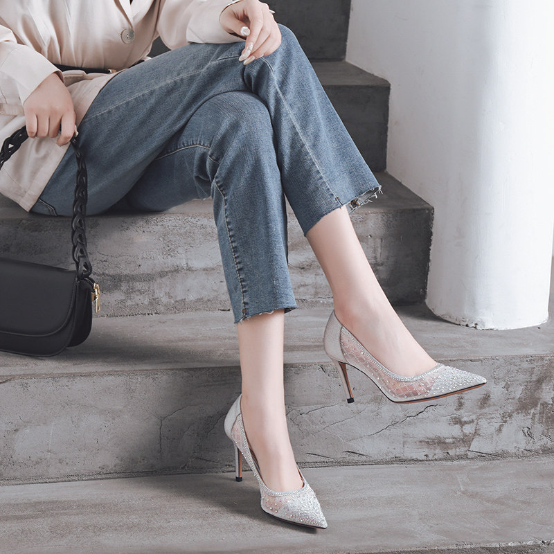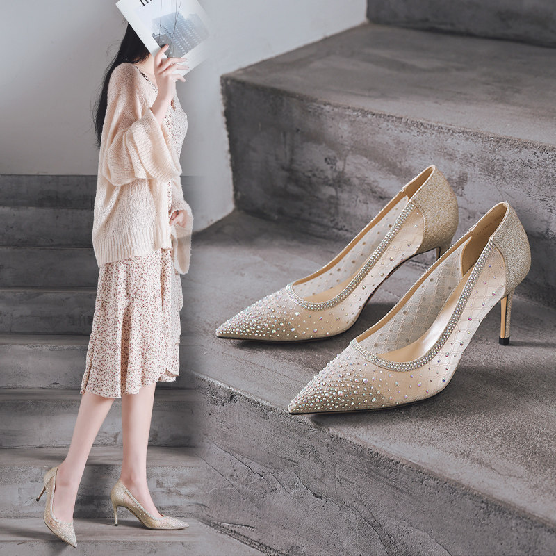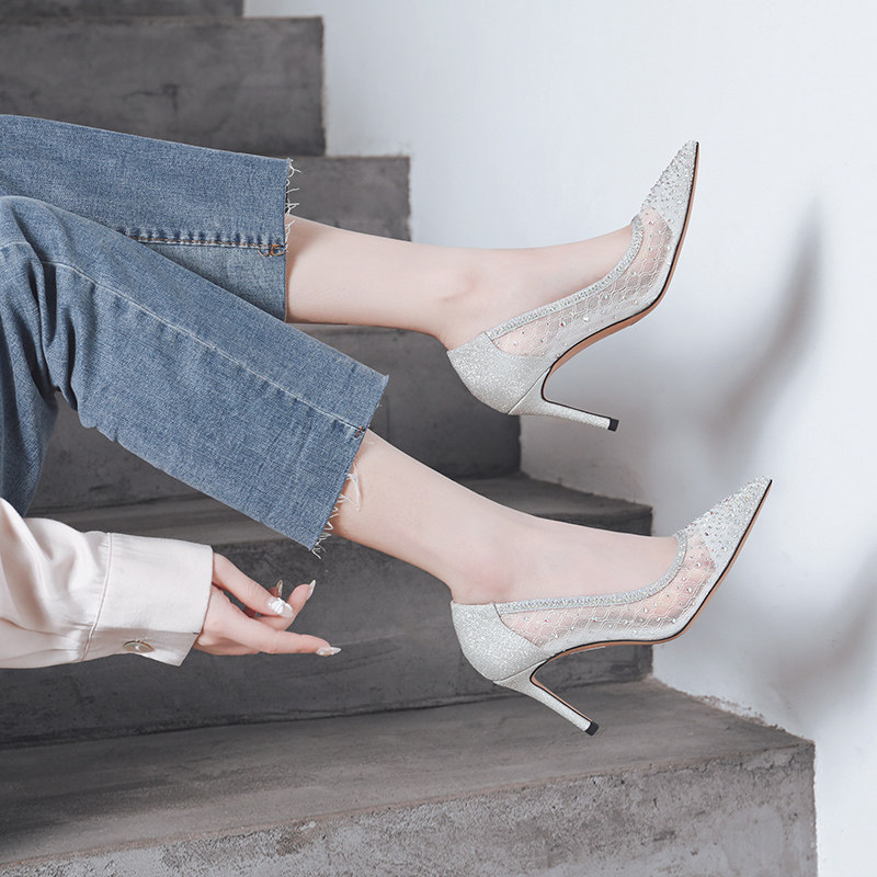 一代佳人 Сетчатые универсальные туфли на высоком каблуке с низким вырезом, коллекция 2021, тренд сезона