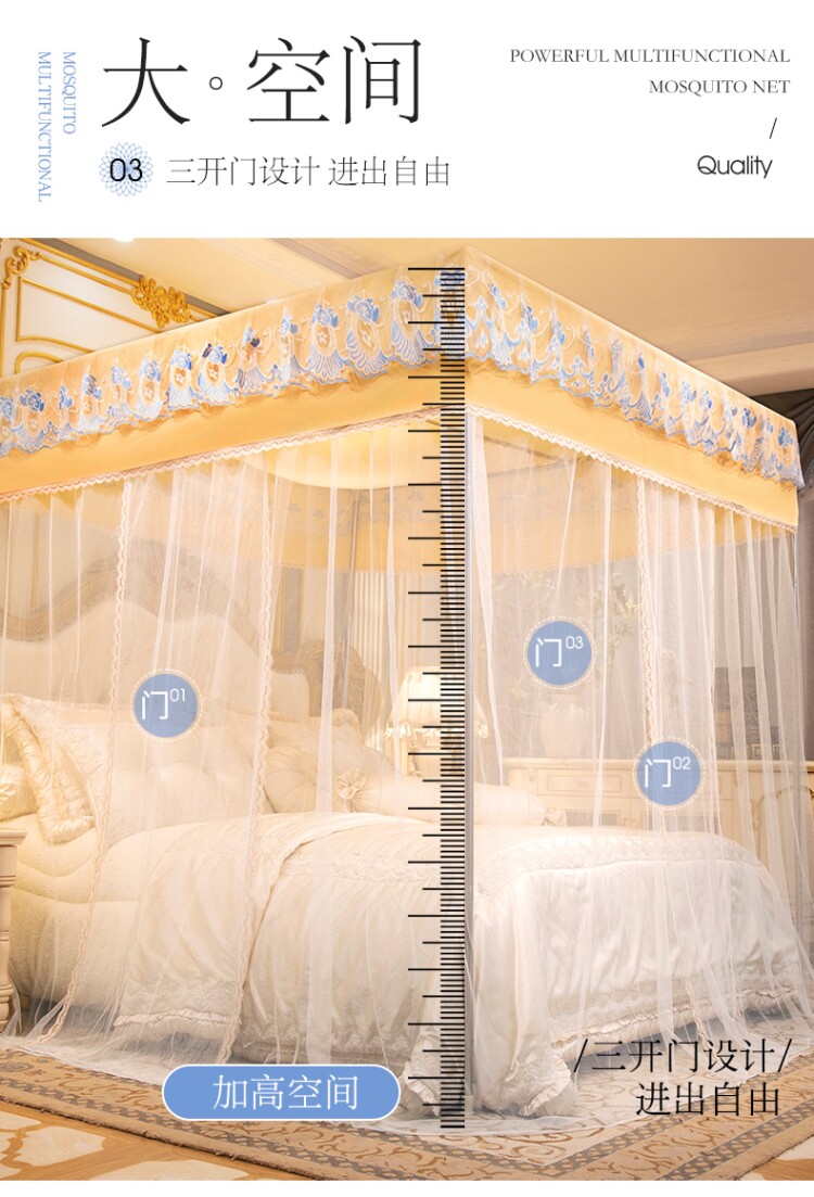 Кровать занавес комара сетка сетка. Домохозяйная спальня встроенная трехдверная зашифрованная утолщенный дворец