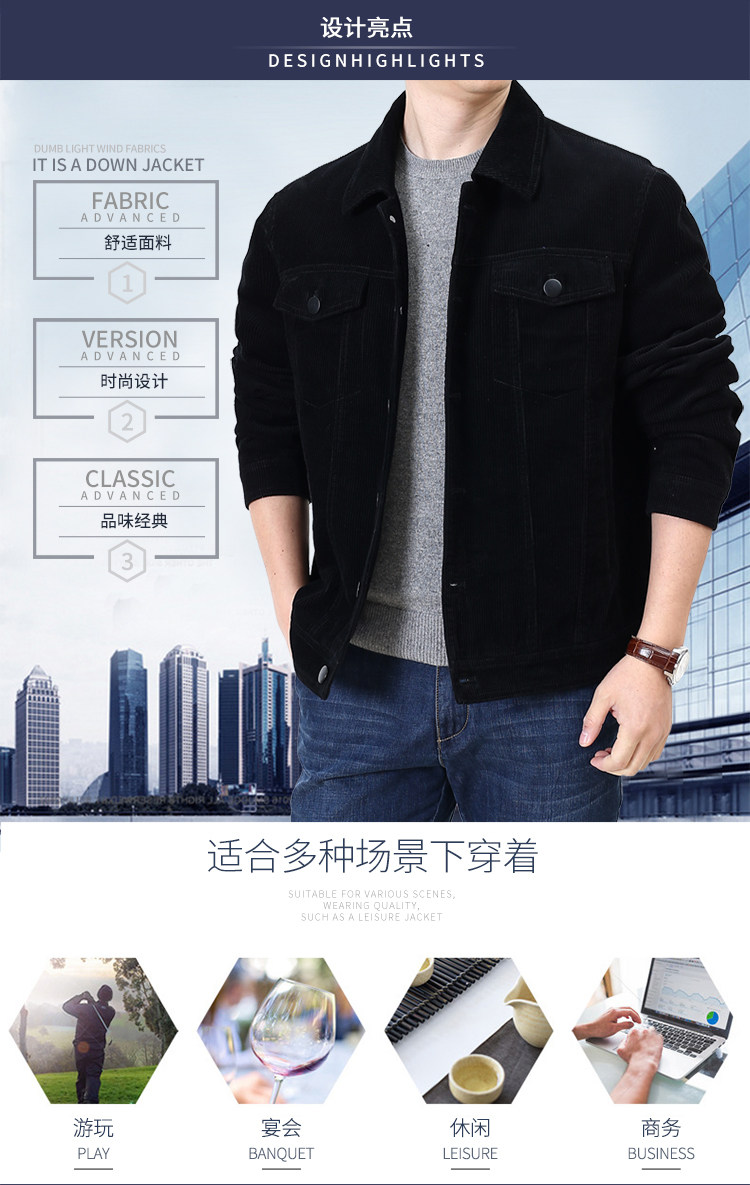 Вельветовая мужская осенняя хлопковая бархатная куртка, оверсайз, для среднего возраста