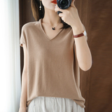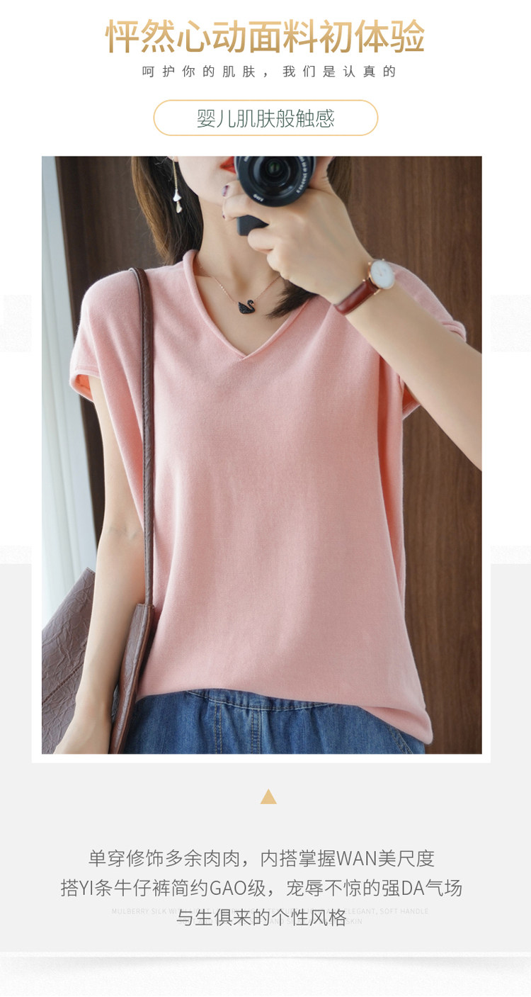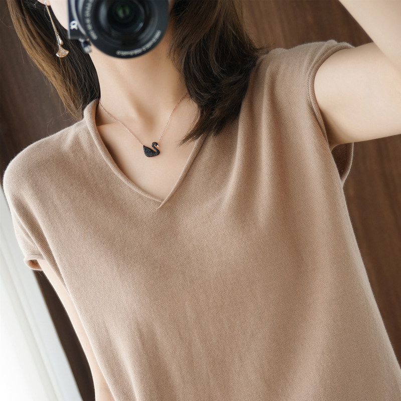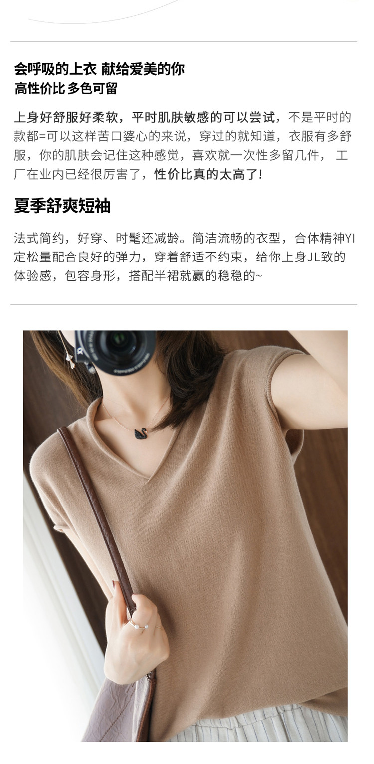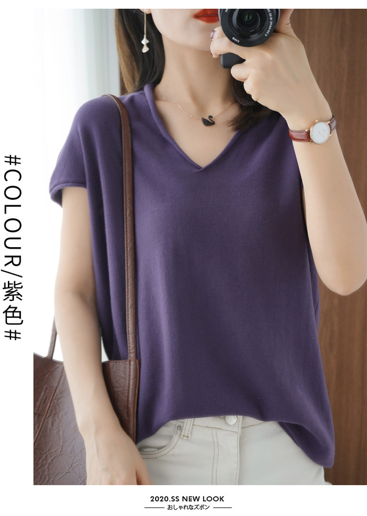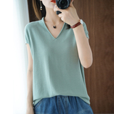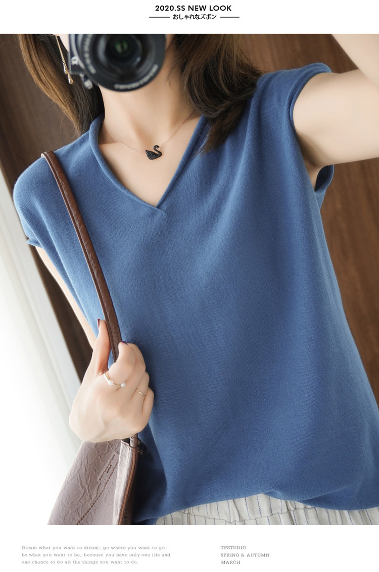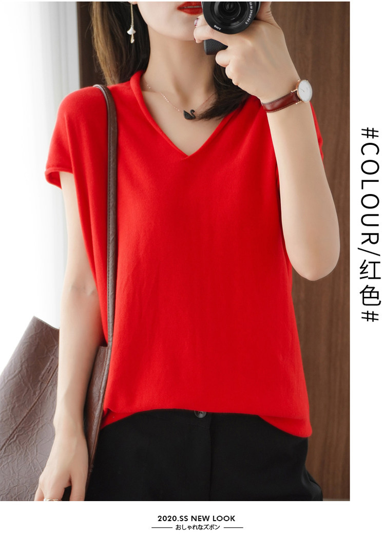 Хлопковая футболка, трикотажный свитер, коллекция 2021, 100% хлопок, из хлопка и льна, V-образный вырез, короткий рукав, свободный крой