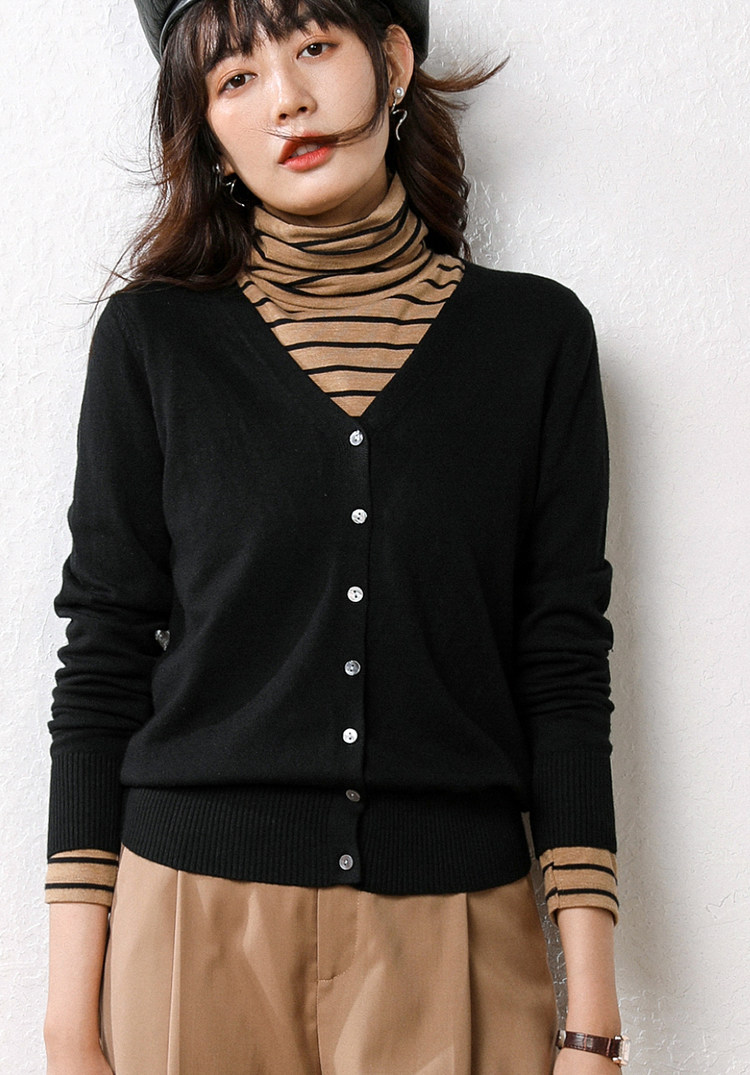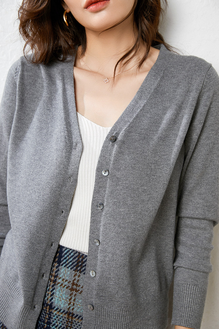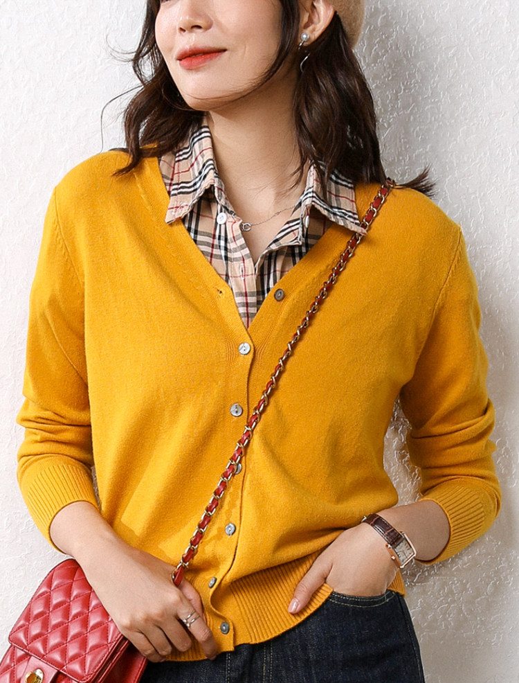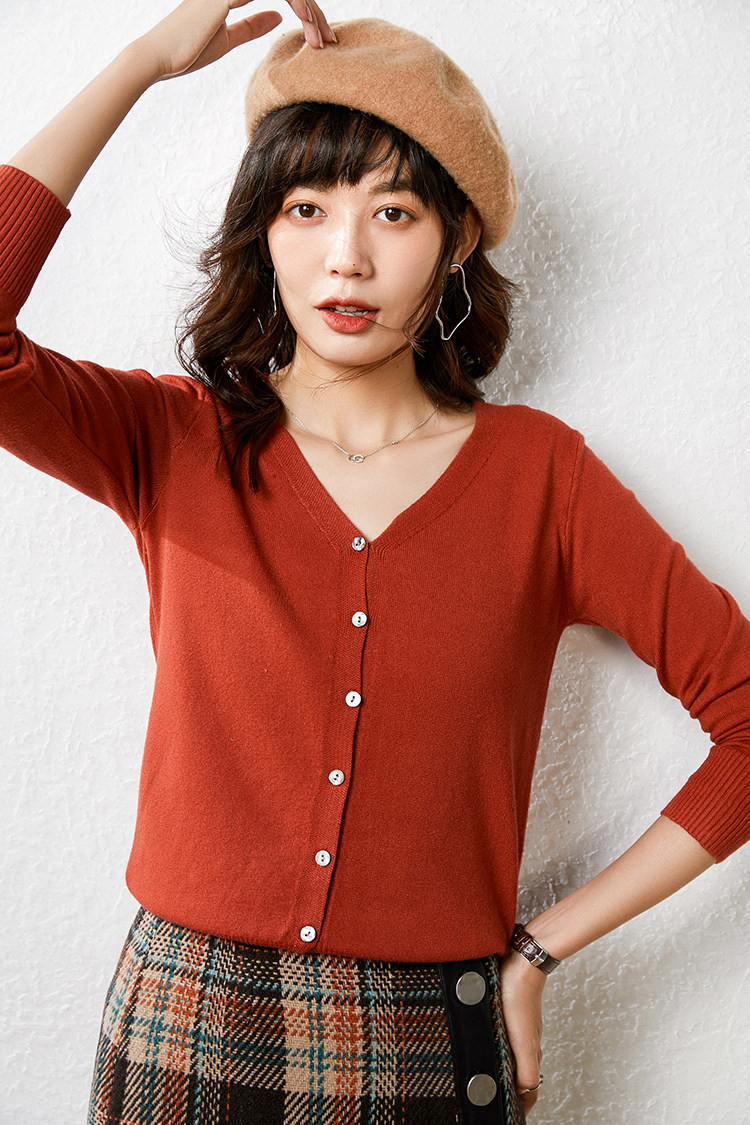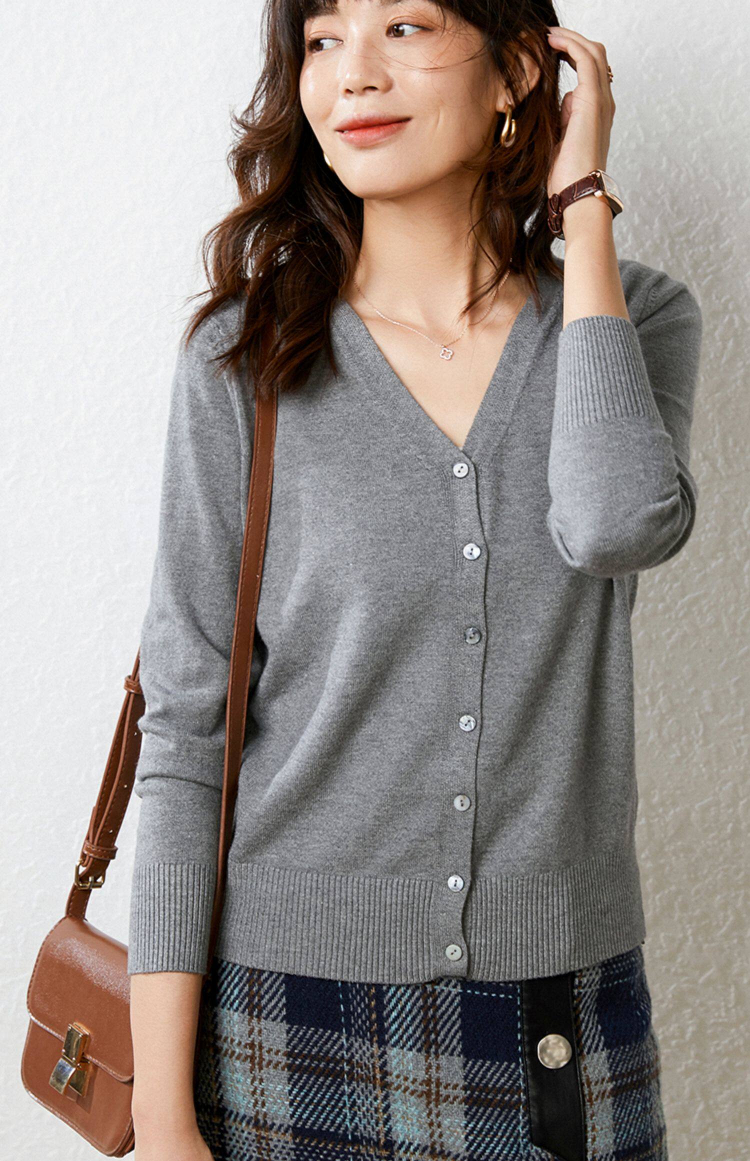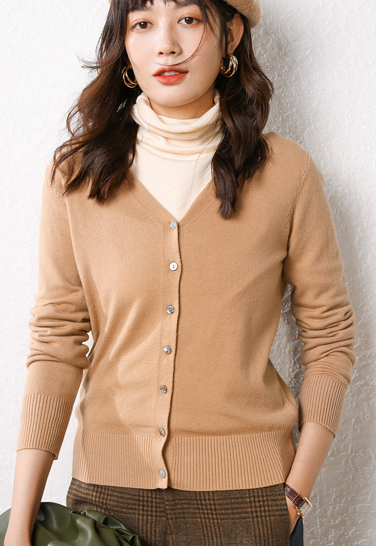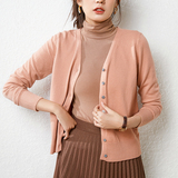 Осенний демисезонный шерстяной кашемировый кардиган, рубашка, трикотажная куртка, короткий свитер, V-образный вырез, оверсайз