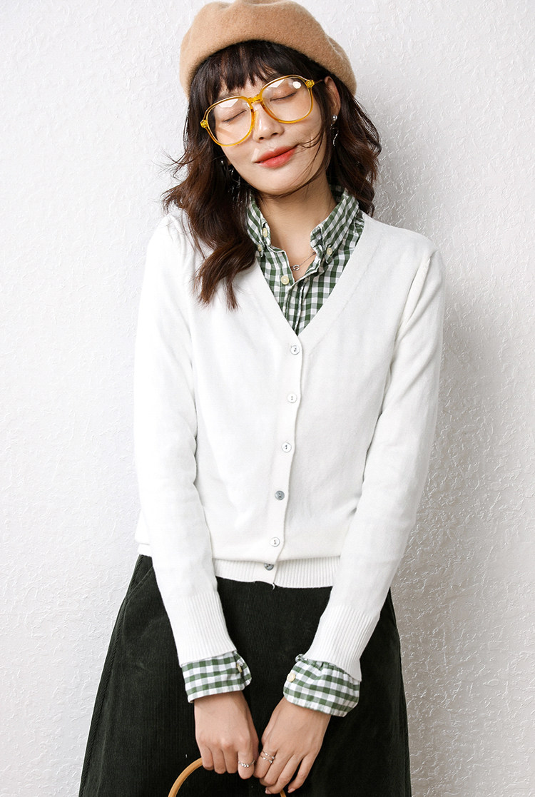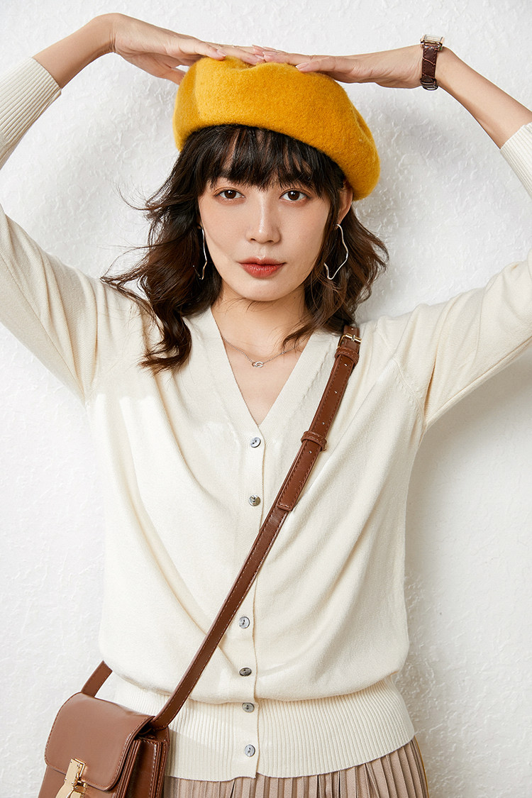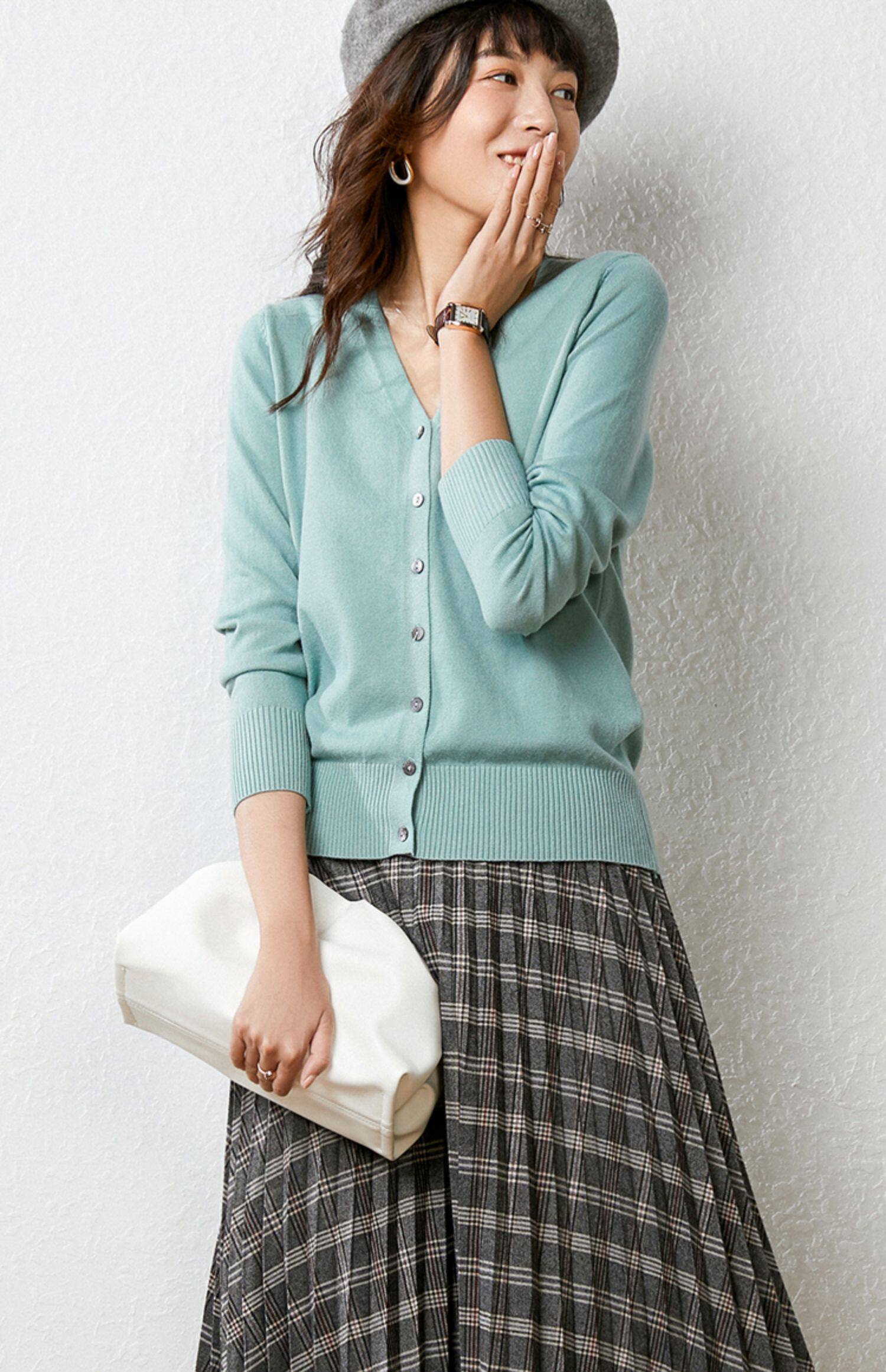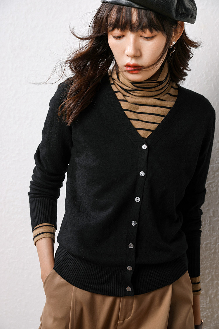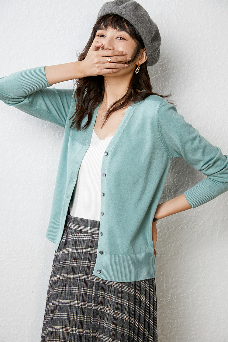 Осенний демисезонный шерстяной кашемировый кардиган, рубашка, трикотажная куртка, короткий свитер, V-образный вырез, оверсайз