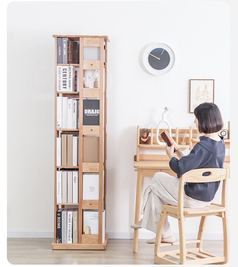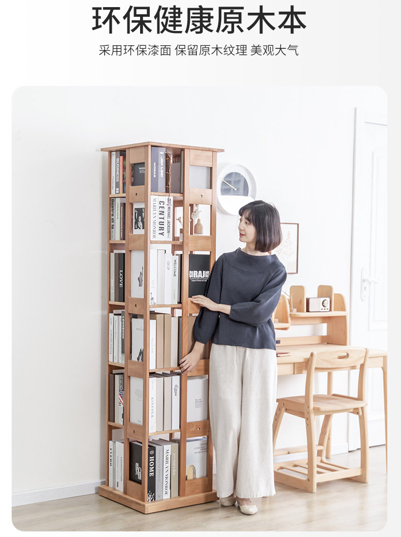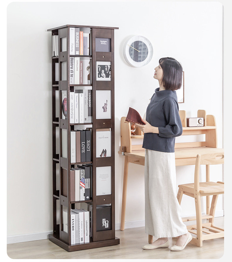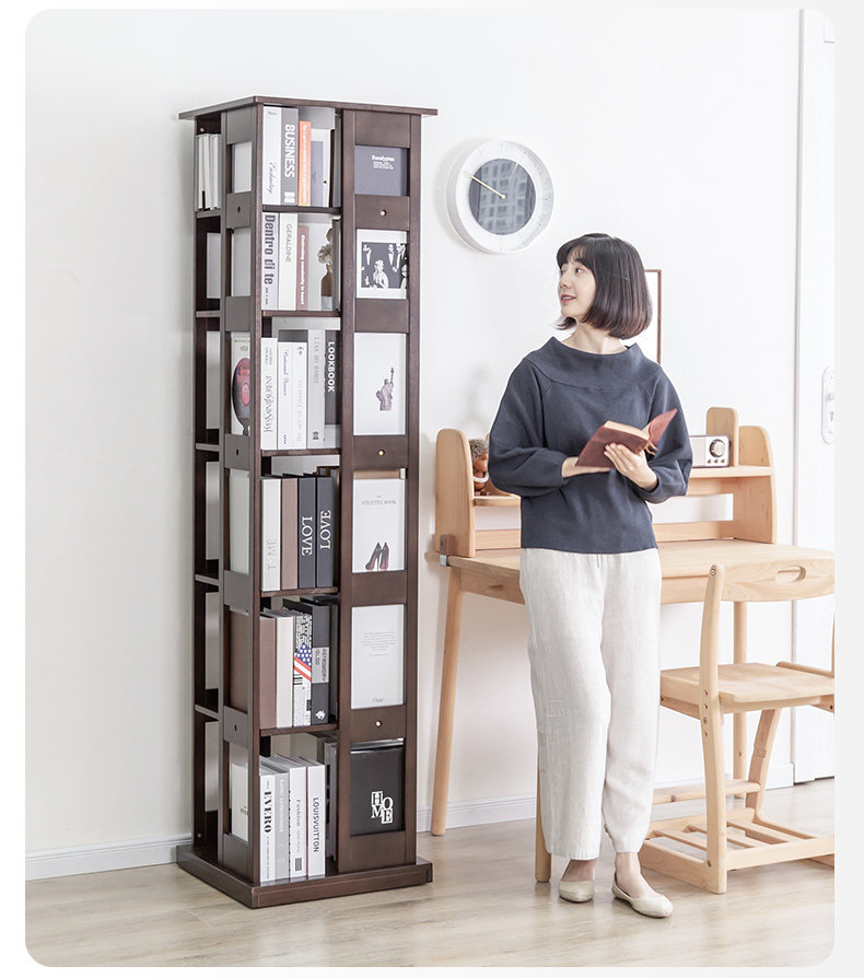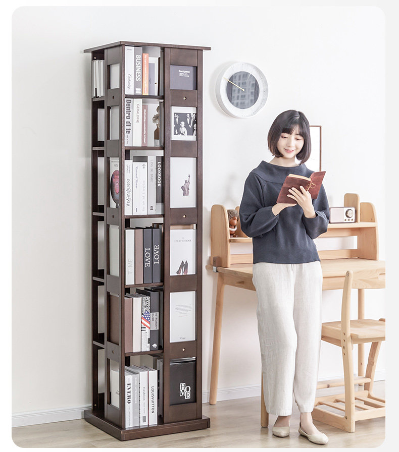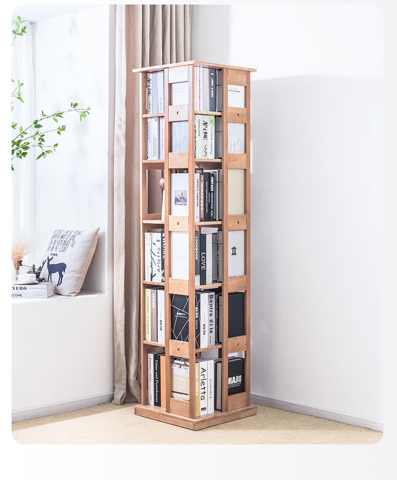 Крутящаяся книжная полка из натурального дерева, многослойный книжный шкаф