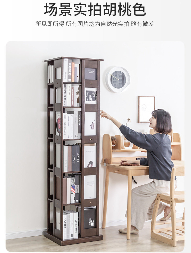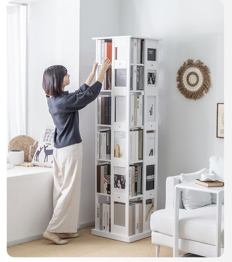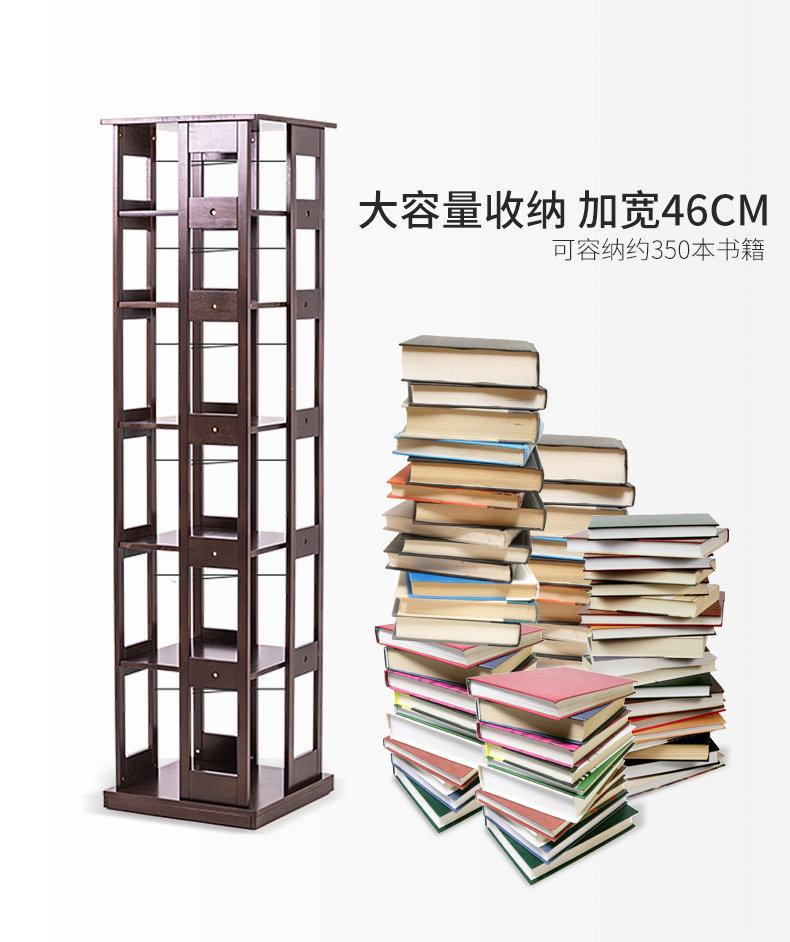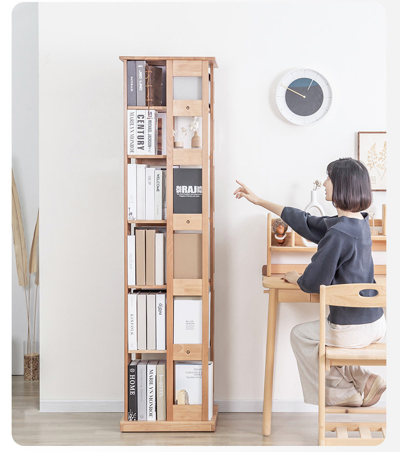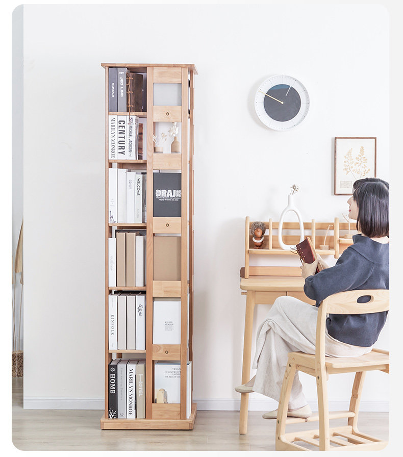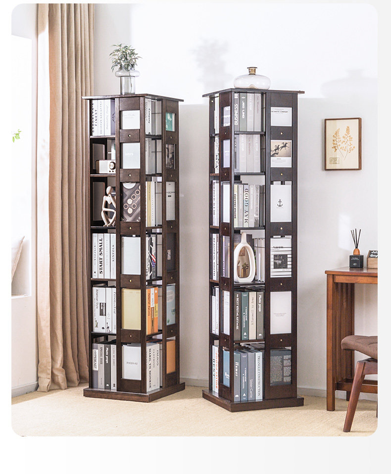 Крутящаяся книжная полка из натурального дерева, многослойный книжный шкаф