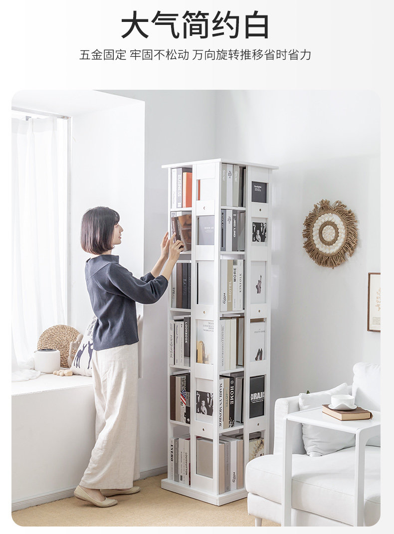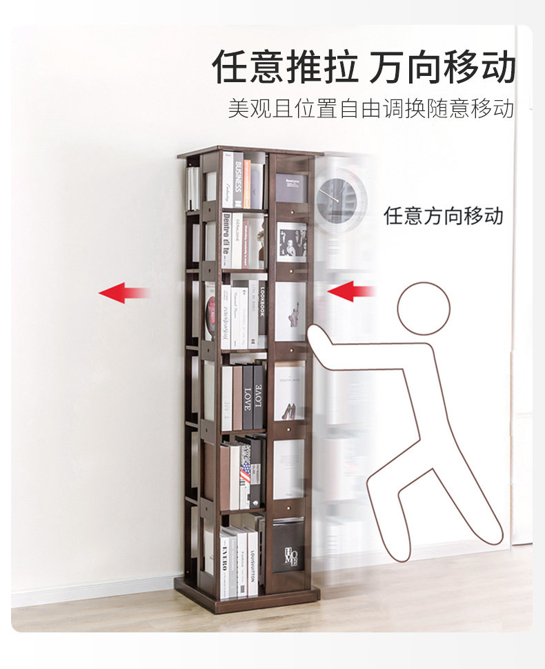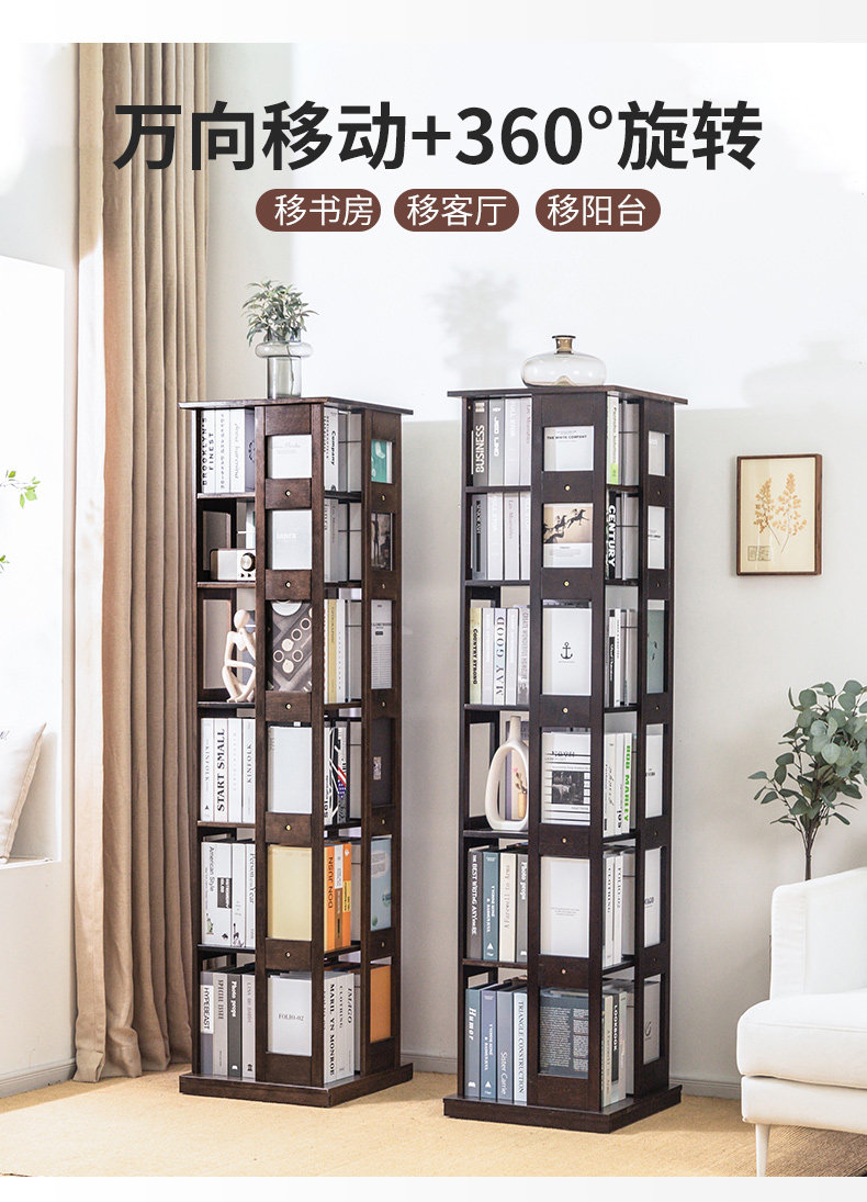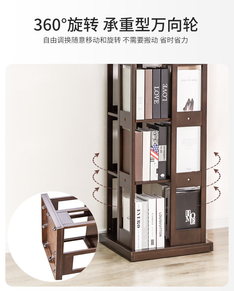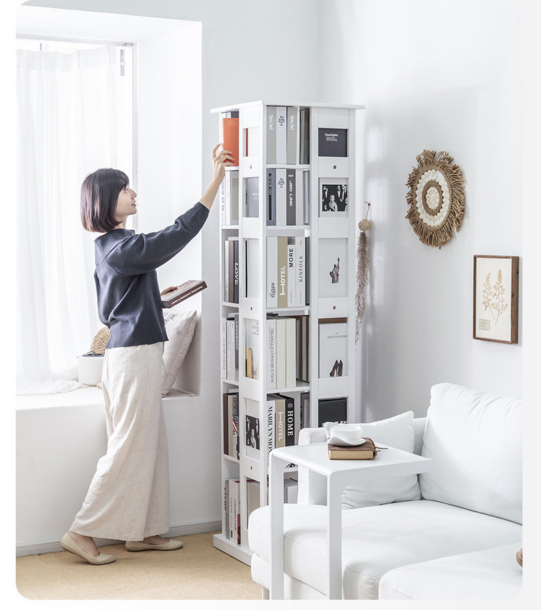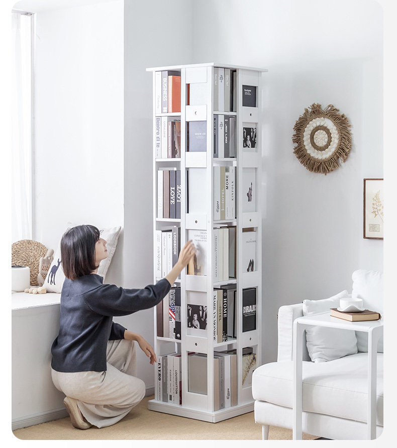 Крутящаяся книжная полка из натурального дерева, многослойный книжный шкаф