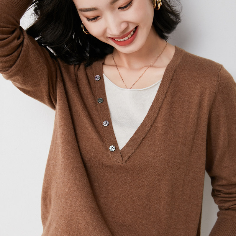 Комплект, лонгслив, кашемировый свитер, демисезонная тонкая футболка для отдыха, 2020 года, V-образный вырез, оверсайз