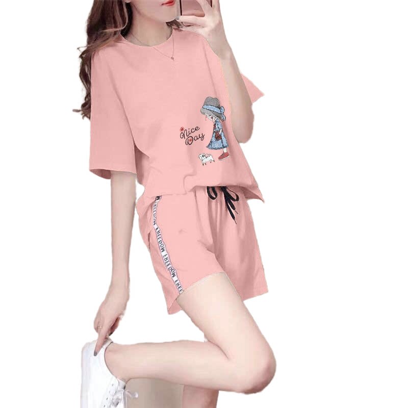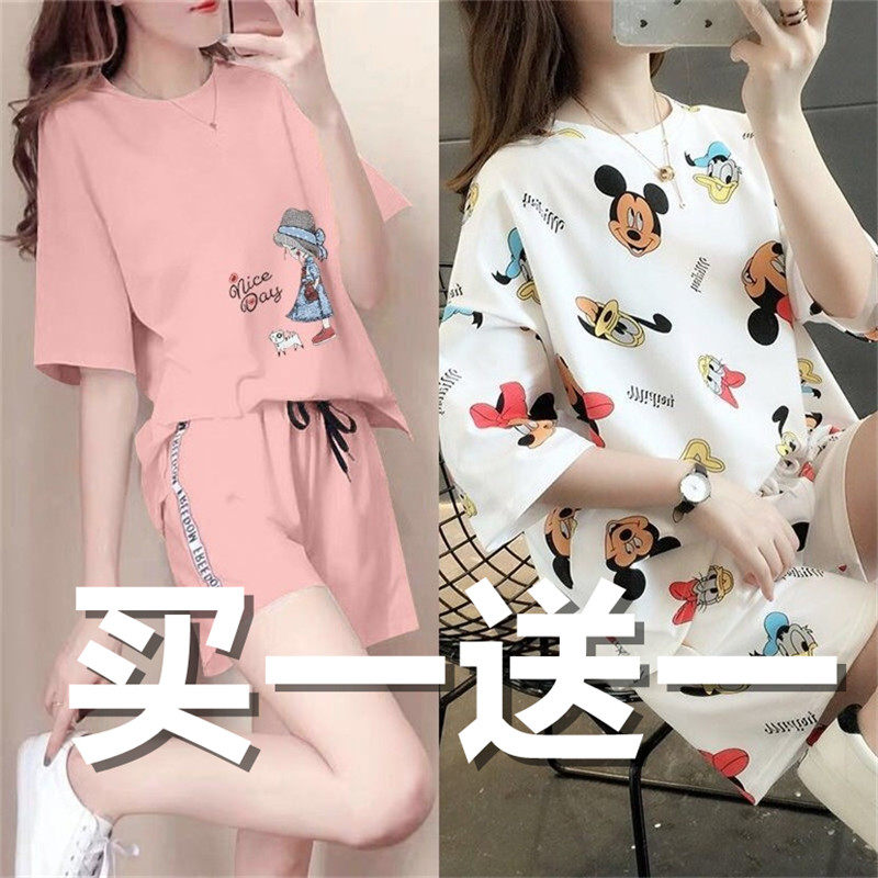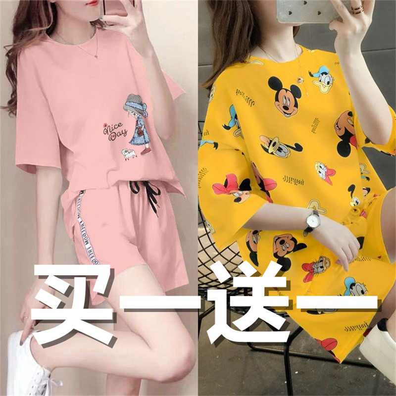 Летняя пижама, спортивный комплект для школьников для отдыха, в корейском стиле, короткий рукав, большой размер
