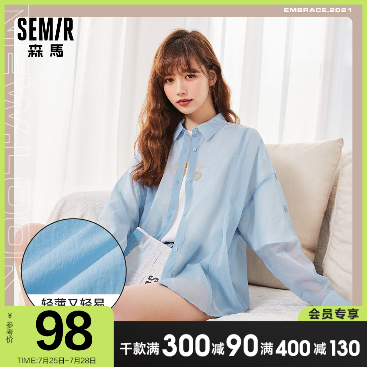 Semir, рубашка, белый сексуальный летний синий лонгслив, 2021 года