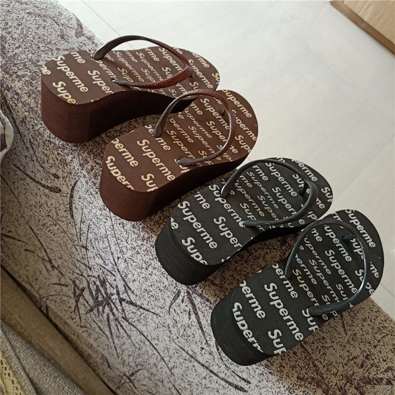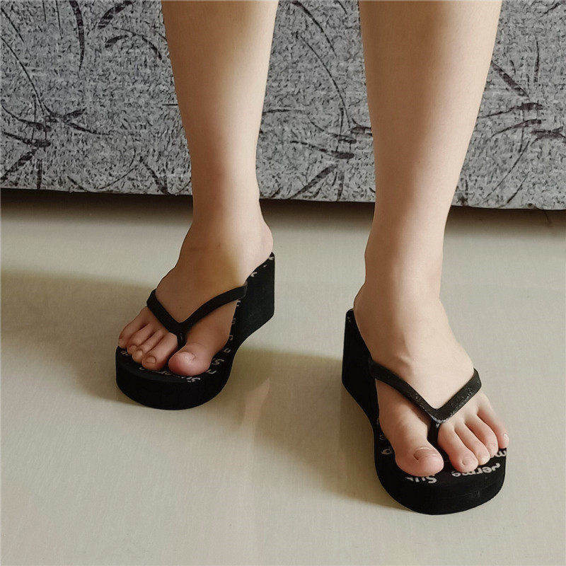 Высокие каблуки, женские босоножки на танкетке, женская верхняя одежда, молодежная обувь, увеличивающая рост, нескользящая высокая платформа, толстая подошва, универсальные шлепанцы.