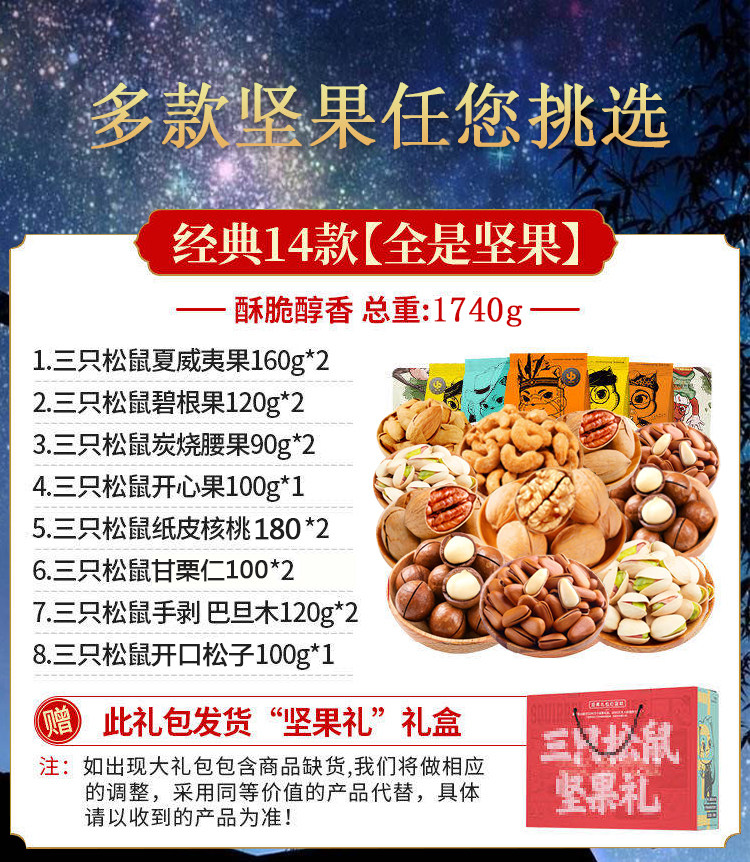 - 14 упаковок чистых орехов (подайте подарочную коробку)