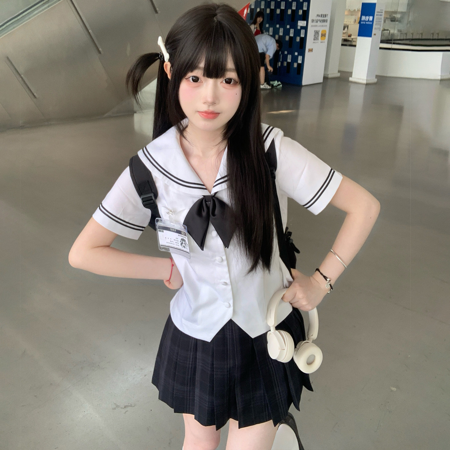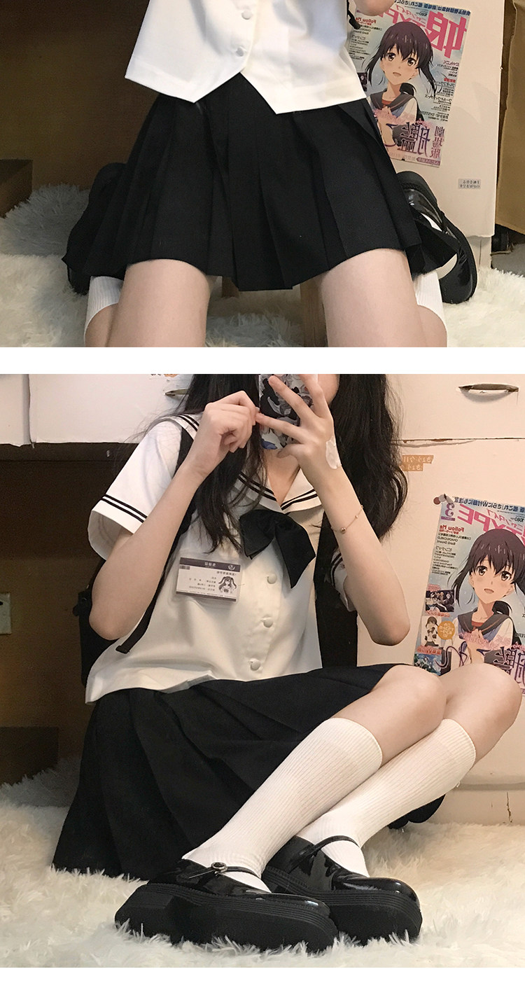 花千猪 Оригинальная японская короткая студенческая юбка в складку, короткий рукав
