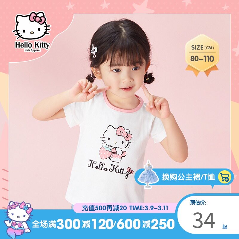 Hellokitty Детская одежда 2022 Летняя Новая молодая молодая младенца, иностранная ци, милая повседневная полоса