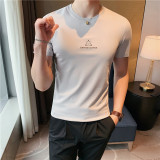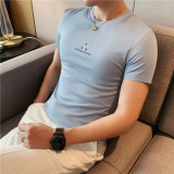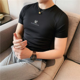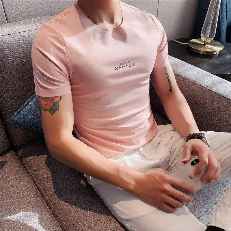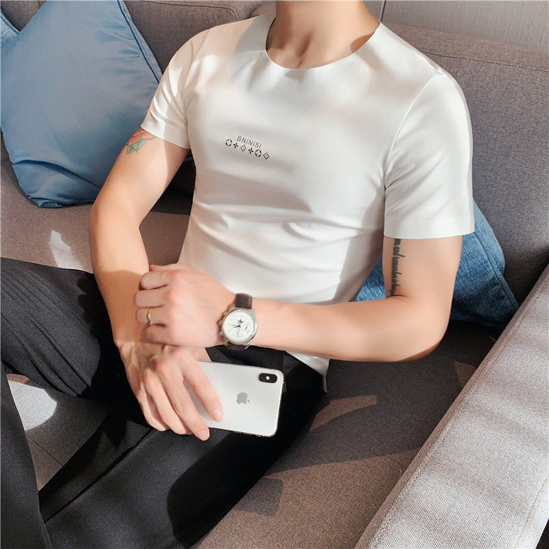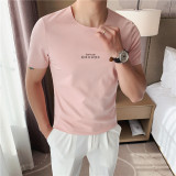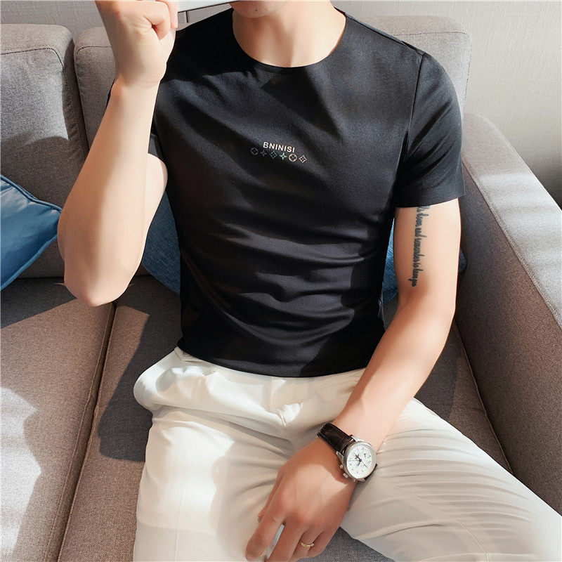 Шелковая тонкая эластичная трендовая футболка с коротким рукавом, облегающий крой, в корейском стиле