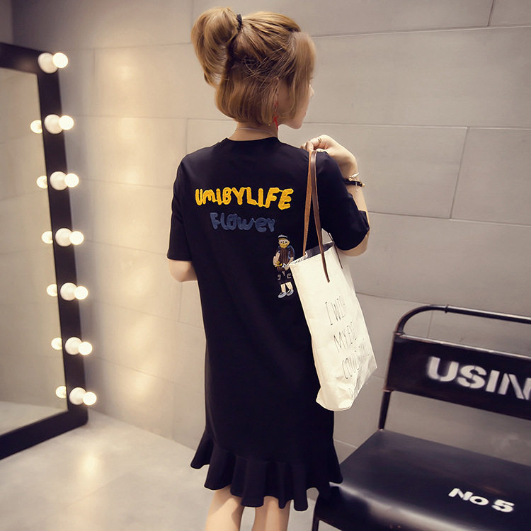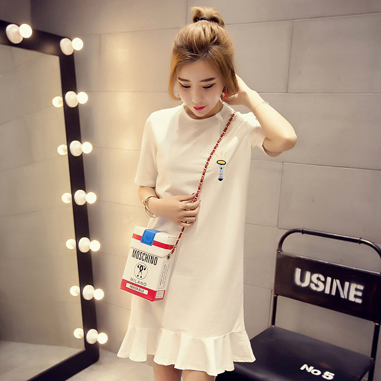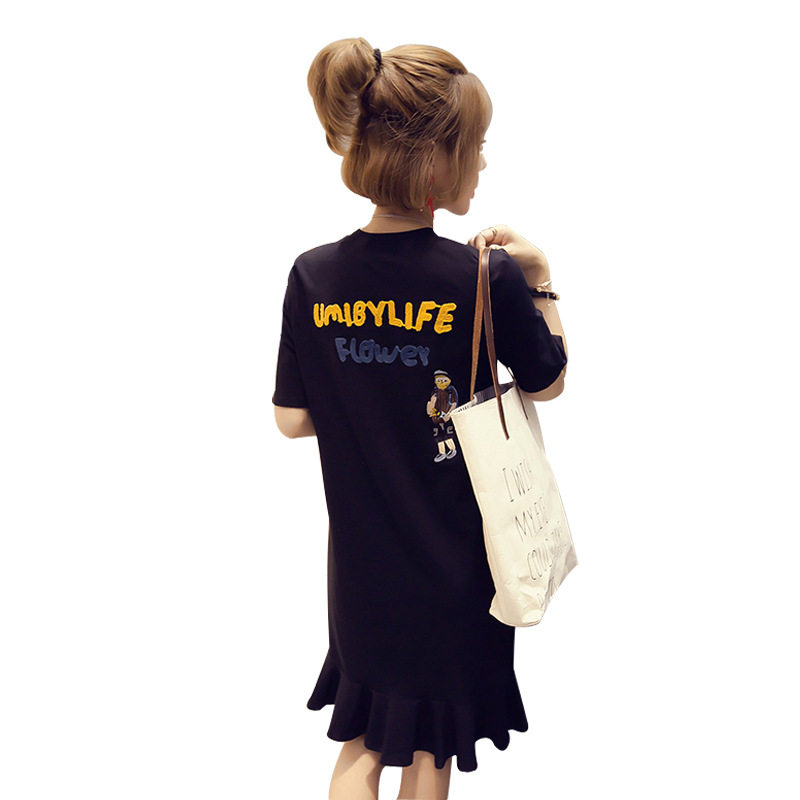Длинное весеннее платье, юбка, футболка с коротким рукавом для школьников, платье-футболка, средней длины, коллекция 2022, в корейском стиле, свободный крой